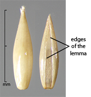 Sometimes a floret may be mistaken for a seed or fruit of a species that is not a grass. However, under magnification, the two edges of the lemma, where it overlaps the palea, can be seen (Figure 11). More rarely only one edge is seen in species where the lemma completely envelops the palea. In either case, no other FNW fruit or seed disseminule has this characteristic.