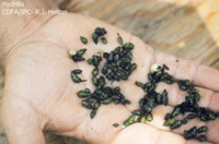 Many angiosperms are capable of vegetative reproduction. It is especially common in the FNW aquatic families Hydrocharitaceae and Pontederiaceae. The FNW species that disperse themselves more or less exclusively by vegetative means, and therefore, like the ferns, are not included in any of the keys based on fruit and seed disseminules, include the alga Caulerpa taxifolia and the angiosperms Hydrilla verticillata (Figures 2, 3), Lagarosiphon major, and Opuntia aurantiaca. The fact sheet for each taxon includes additional details on that taxon’s vegetative reproductive capabilities.