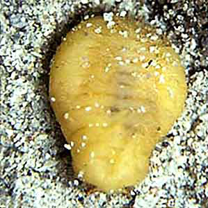 Because of the subterranean habit of the species in this family, little detailed information is available on their biology. Two species of economic importance have been studied. Porphyrophora tritici (Bodenheimer) is a pest of wheat. According to Duran (1971) it has a single generation per year and overwinters as eggs in the ovisac in soil. In December the crawlers hatch, emerge from the soil, and crawl into the leaf sheaths of the grass where they feed for 30 to 45 days. The first instar enlarges, reenters the soil, and molts to the cyst stage in early April. This instar feeds on the roots of the host until late May or early June when adult females appear. After moving through the soil for several days at a depth of 3 or 4 cm, the female begins forming an egg sac and lays eggs. Porphyrophora polonica (Linnaeus) has a similar life history. One difference is that adult females climb to the top of vegetation waiting for adult males. During the cyst stage, there are multiple molts (up to 12). Sphaeraspis vitis (Philippi) also has a similar biology, but can survive for years in the cyst stage. Jakubski (1965) described a single generation each year, but González (1983) discussed generations taking multiple years.