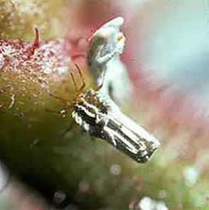 Ensign scales have 4 instars in the female and most likely 5 instars in the male. It is unknown if the prepupa is mobile like most margarodoid groups or is sedentary like other scale insects. The life history of these scales is not well described. In the greenhouse on coleus Insignorthezia insignis (Browne) could complete a life cycle in 30 days and reproduction was strictly parthenogenetic. Offspring were deposited over 24 days and from 80-102 nymphs were produced per female (Shivakumar and Lakshmikantha 2001). Feeding occurred on the foliage of the plants.