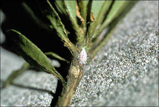 Body elongate oval; body dark gray; legs dark brown; covered by white mealy wax, with 2 submedial longitudinal bare areas on dorsum; dorsal ovisac absent, a few filamentous strands on venter, forming a pad; with 1 pair of conspicuous lateral wax filaments, about 1/2 as long as body. Occurring on all parts of plant, usually in protected area. Usually ovoviviparous. With numerous thin crystalline rods protruding from dorsum.