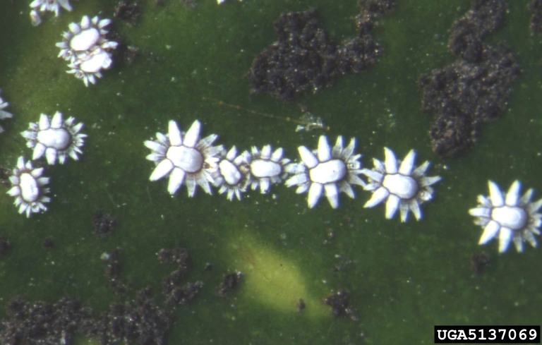 Apparently very similar in appearance to Florida wax scale which is described as follows: Body oval or rectangular; convex in lateral view in old females, nearly flat in young females; body reddish brown; with a thick wax covering; eggs laid in chamber under body of adult; ovisac absent. Test: Wet wax rectangular to oval in dorsal view, hemispherical laterally, without horn, grayish to pinkish white, with large marginal flange in older females absent or small in young females, not hiding lateral filaments, without plates and nuclei. Dry wax with filaments as follows: cephalic filament appearing trifurcate, with acute apices; anterolateral and mediolateral filaments simple; posterolateral filaments bifurcate; caudal filaments with weakly divided, bifurcate apices; dorsal dry wax of first and second instars forming small central cap, not surrounded by nucleus; dorsal dry wax not tilted. Stigmatic wax bands present near both spiracles, anterior band directed dorsally, filamentous wax confined to stigmatic areas. On stems.