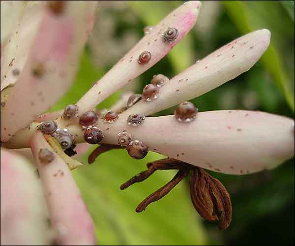 This species was intercepted 67 times on a variety of hosts at U. S. ports-of-entry between 1995 and 2012, with specimens originating from Anguilla, Barbados, Costa Rica, Dominican Republic, Ecuador, Germany, Greece, Hawaii, Israel, Italy, Jamaica, Jordon, Lebanon, The Netherlands, Peru, Portugal, Puerto Rico, South Africa, Syrian Arab Republic, and Vietnam. We also have examined specimens taken in quarantine from: Argentina (Ficus); Azores (Annona, Castanea); Dominican Republic (Cocos); Ecuador (Alpinia); France (Ficus, Myrtus); Greece (Ficus, Pistacia); Guyana (Asplundia); Israel (Cyperus, Ficus, Myrtus); Italy (Ficus, Nerium, Vitis); Ivory Coast (Ficus); Jordan (Ficus); Mexico (unknown host); Morocco (Ficus); Palestine (Ficus); Portugal (Ficus, Strelitzia); Puerto Rico (Ficus, Phoenix, Terminalia); Sicily (Ficus); Spain (Ficus); St. Croix (Annona); Uruguay (Ficus); The Virgin Islands (Laurus, Pimenta); Yugoslavia (Ficus). ScaleNet includes hosts in more than 40 families. It is found in all but the Australasian zoogeographic region. One species of Ceroplastes other than C. ceriferus (Fabricius), C. cirripediformis Comstock, C. floridensis Comstock, C. japonicus Green, C. rubens Maskell, C. rusci (Linneaus), C. sinensis Del Guercio and C. stellifer (Westwood) has been intercepted at a U. S. port-of-entry, C. cistudiformis Cockerell (Mexico, on Punica).