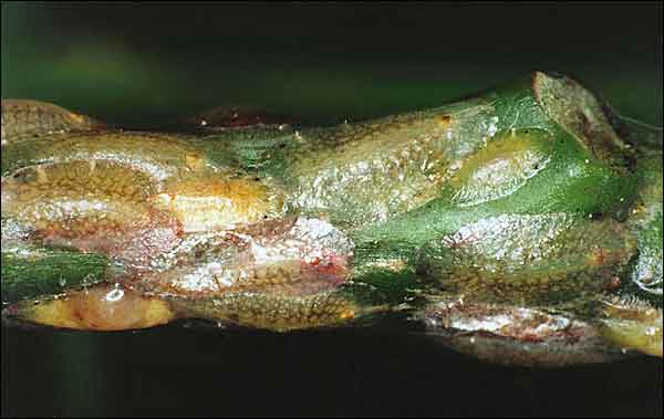 Body usually elongate oval; moderately convex in lateral view; body yellow with brown mottling in young females, becoming completely brown at maturity; without an obvious wax covering; ovisac absent. Occurring on leaves, branches, and twigs of host plant. Males absent; eggs hatch within body of female.