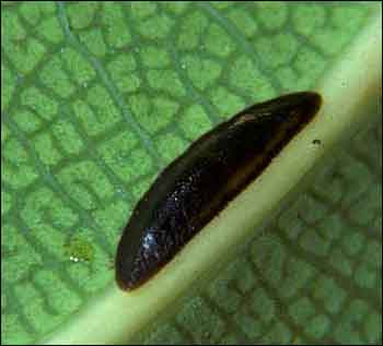 Body elongate, often asyemmetrical, tip of head and abdomen acute; slightly convex in cross section; newly mature females with body creamy white or yellow green, older females dark brown or black; without an obvious wax covering; ovisac absent. Normally occuring on the undersides of leaves adjacent to a main vein. Males are unknown.