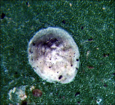 Scale cover almost circular, white, 6 to 8 ridges radiating from central cone, without exuviae; volcano shaped in lateral view; body purple with yellowish brown pygidium; eggs light yellow. On leaves, stems, and bark of host.