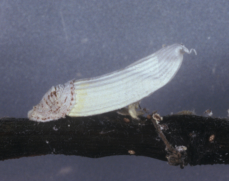 Body yellow, legs and antennae black, covered by thick layer of white wax, arranged in tufts or ribbons; body margin with 18-20 tufts, longest on anterior and posterior ends of body; ovisac attached to body of female, striated and truncated (Unruh & Gullan 2008b). Occurring on foliage or branches of host.