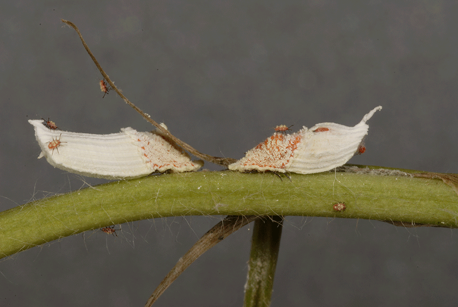 This species was intercepted 22 times at U. S. ports-of-entry between 1995 and 2012, with specimens originating from Antigua and Barbuda, Dominica, Grenada, Jamaica, Mexico, Puerto Rico, St. Kitts and Nevis, Trinidad and Tobago, and U.S. Virgin Islands. We have examined specimens taken in quarantine from Mexico (Lysiloma). ScaleNet lists hosts in 18 plant families. ScaleNet distribution records for C. genistae include The United States of America (Florida) in the Nearctic zoogeographic region, and Brazil (Espírito Santo, São Paulo) and Guadeloupe in the Neotropical region. It is most commonly collected on composites (Asteraceae) and legumes (Fabaceae). Four species of Crypticerya other than C. rosae (Riley & Howard) and C. genistae have been intercepted at a U. S. port-of-entry including: C. littoralis (Cockerell) (Mexico, on Carica, Chamaedorea, and Persea; Guatemala, on Chamaedorea); C. montserratensis Riley & Howard (Colombia, on orchid; Dominican Republic, on Annona; Guatemala and Mexico, on Chamaedorea); C. similis Morrison (El Salvador, on Laelia); and C. zeteki (Cockerell) (El Salvador, on orchid).