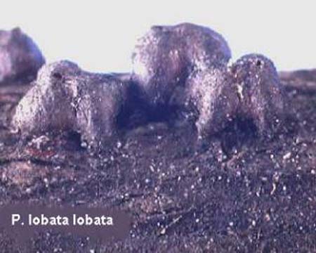 Paratachardina pseudolobata Kondo & Gullan is similar to P. lobata (Chamberlin) by having the anterior and posterior ends of the body developed into 2 large lateral lobes, and the antenna large and 2-segmented. P. pseudolobata differs from P. lobata by having the ventral duct groups anterior of the mouthparts in 2 discrete clusters (merged in P. lobata) with 23-41 ducts in both clusters (50-60 in P. lobata) and 2 ventral duct groups on each side of body posterior of each hind spiracle (3 or 4 on P. lobata). Character information was provided by Takumasa Kondo and Penny Gullan (personal communication June 20, 2006).