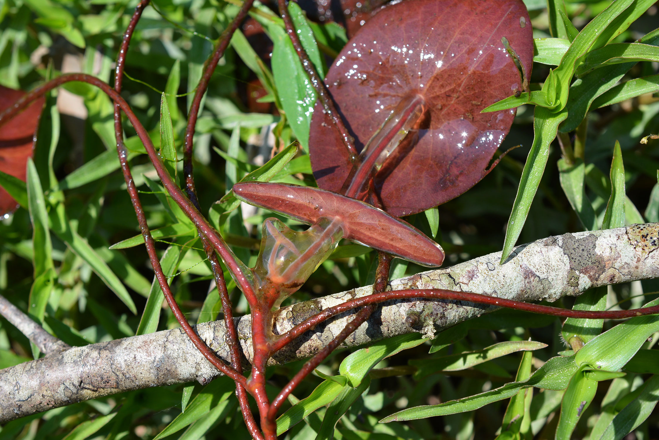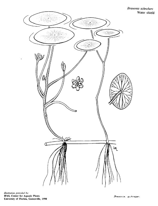 Brasenia schreberi, the single species in this genus, is widely distributed and is closely related to Cabomba Aubl. The leaf shape and mucilagemucilage: