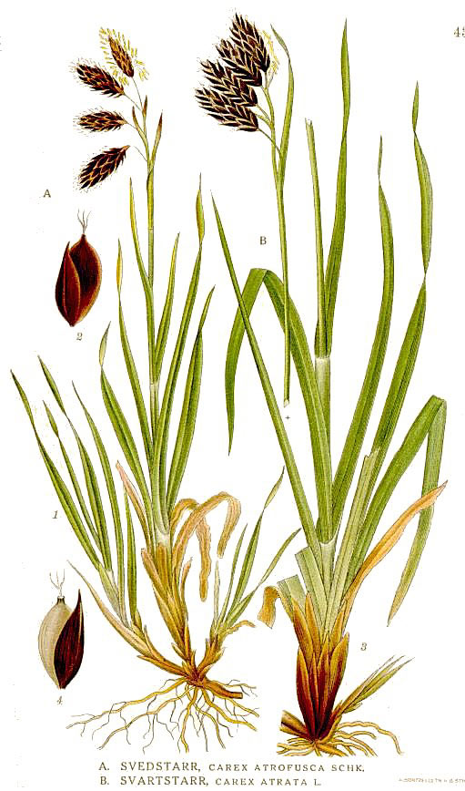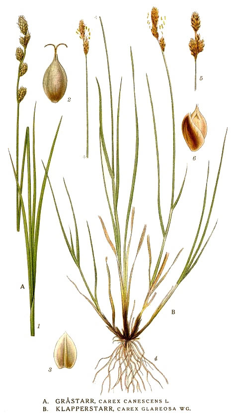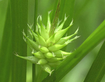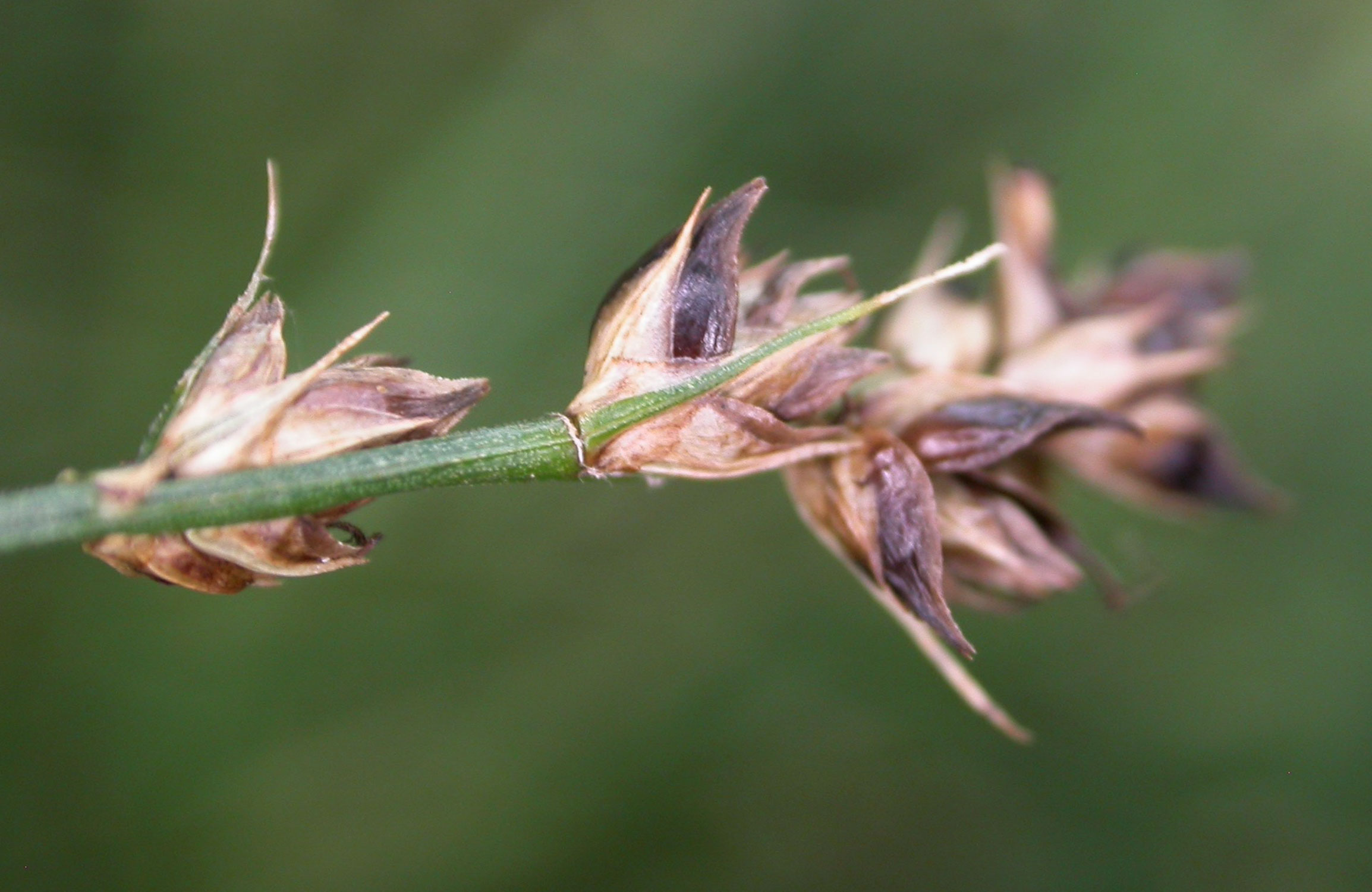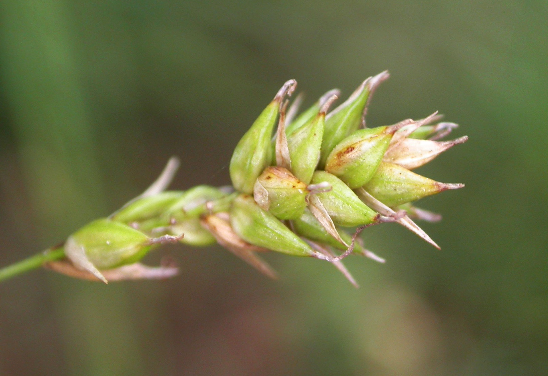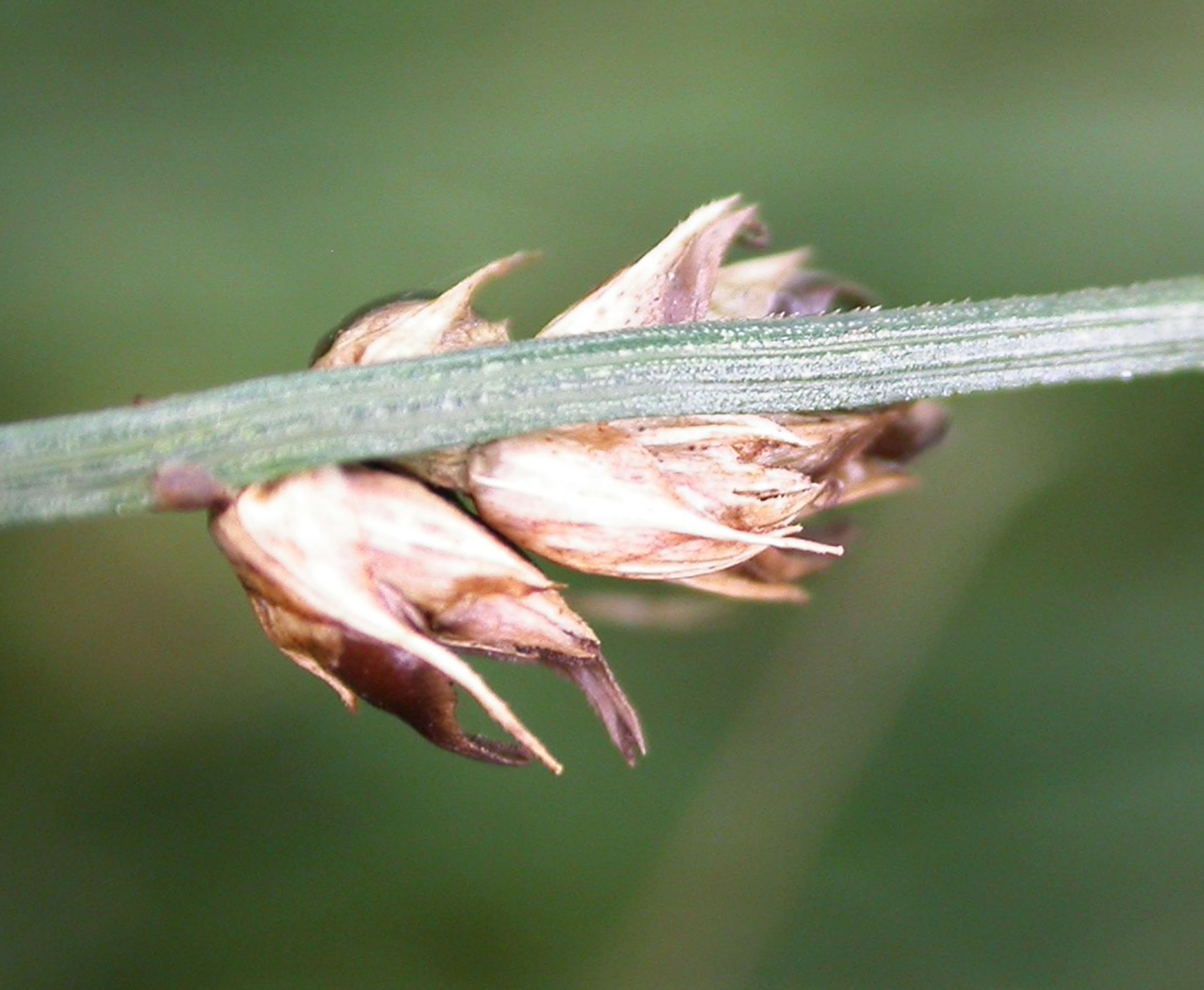 enclosed in flask-shaped bractlet (perigynium). Fruit contained by and falling with perigynium.