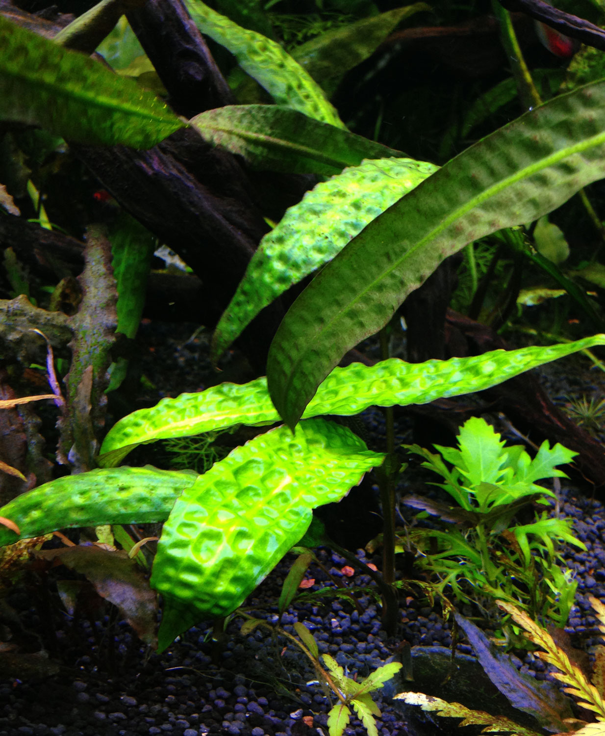 A genus of 60 species, but only about a dozen species commonly traded in the industry. Typically delicate, slow growing plants that may spontaneously rot when conditions change suddenly. Cultivated either submersedsubmersed: