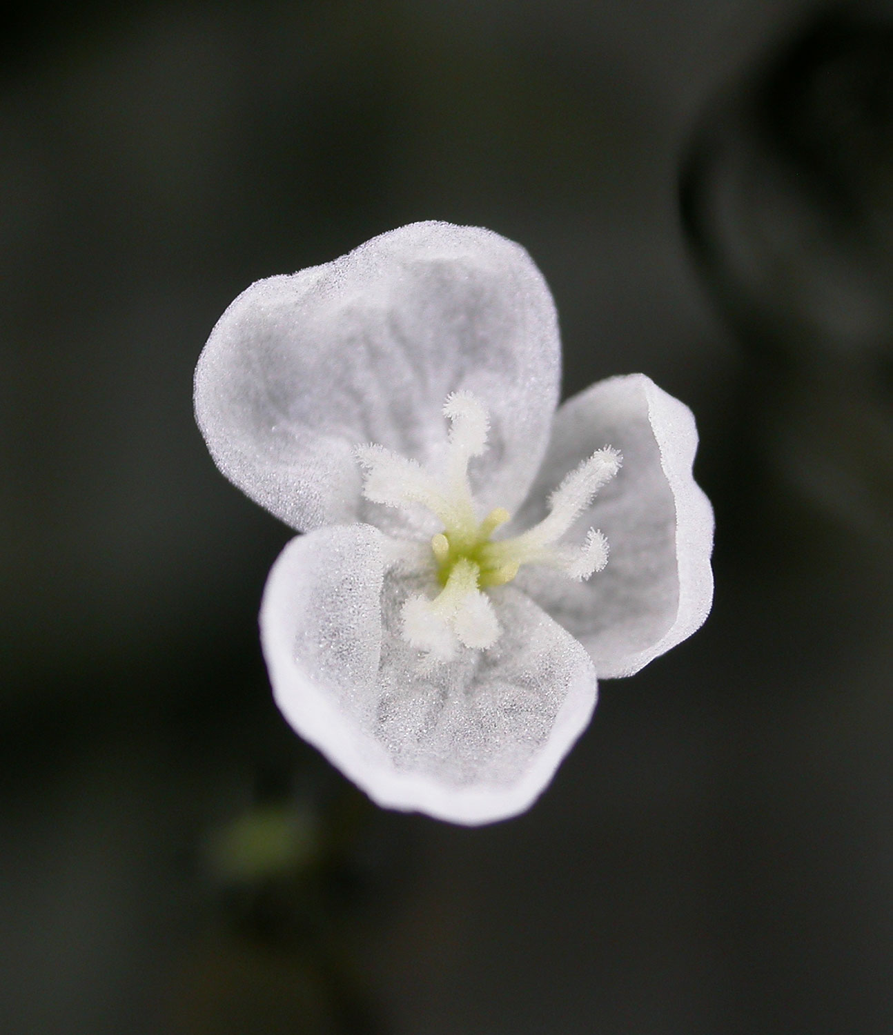 . The white pedicillate flowers produced well above the water surface are a distinctive characteristic of this genus among plants with similarly looking foliage and growth forms.