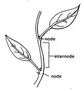 branches grow only from double nodes (specialized nodes separated by a shortened internodeinternode: