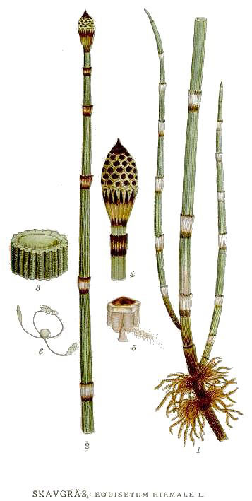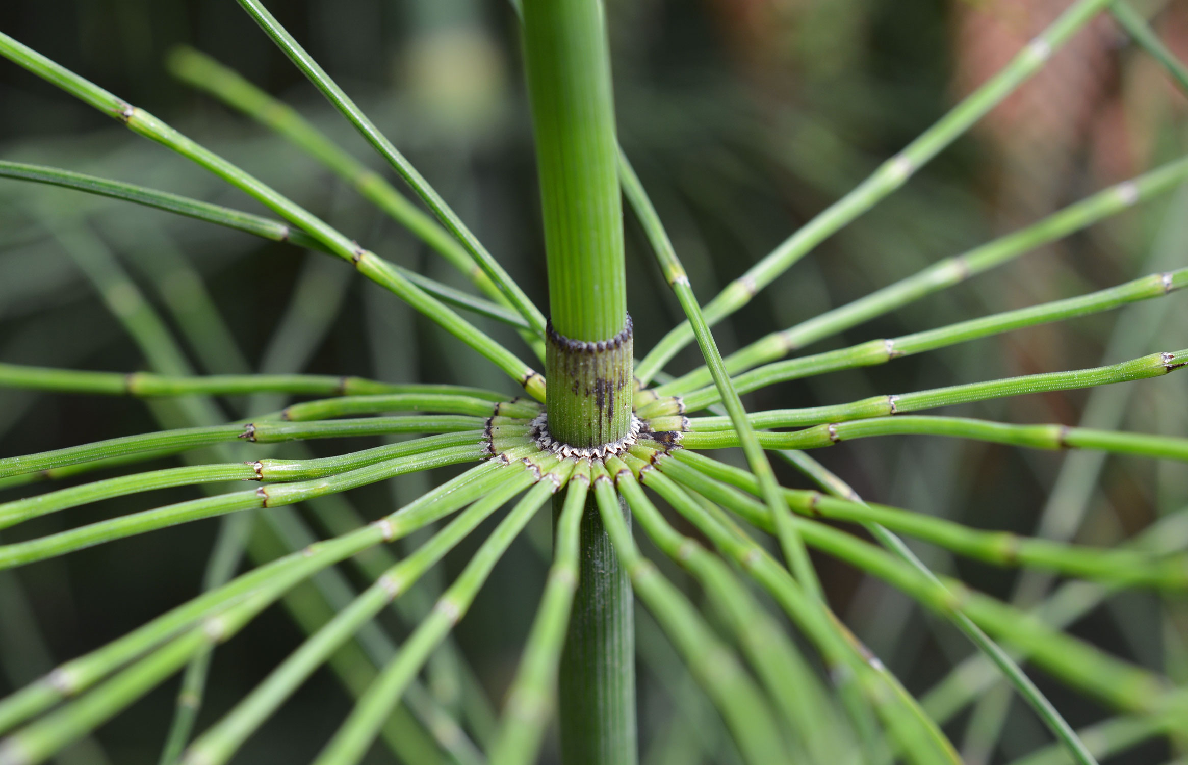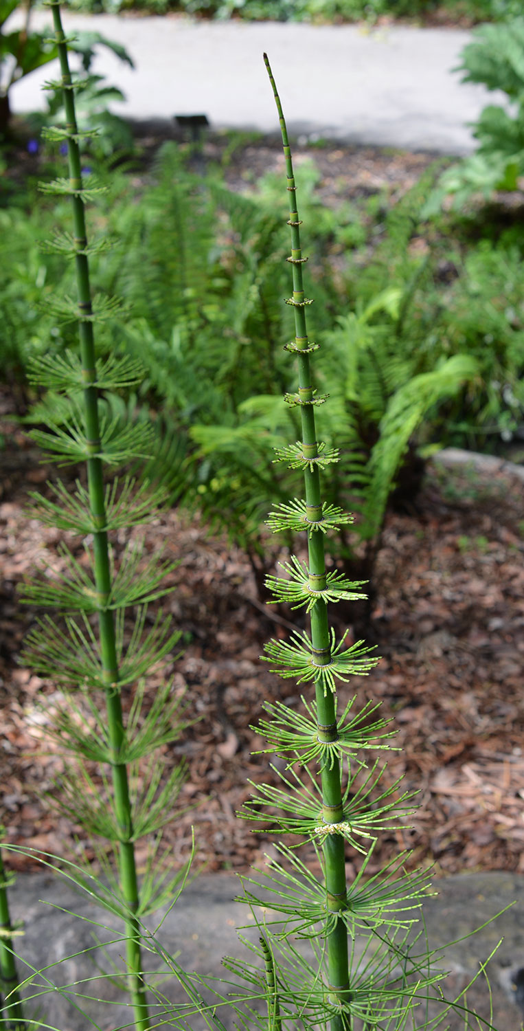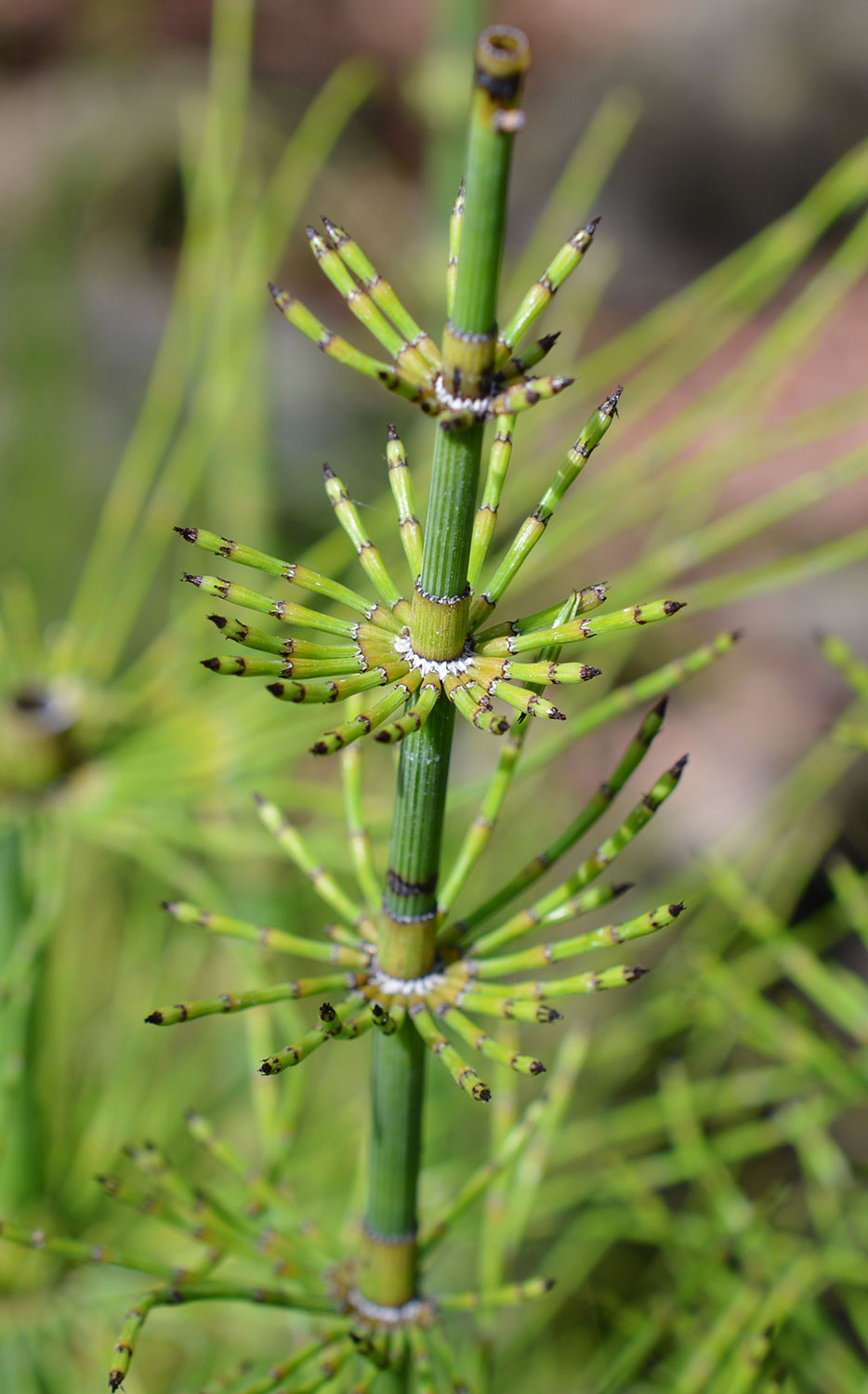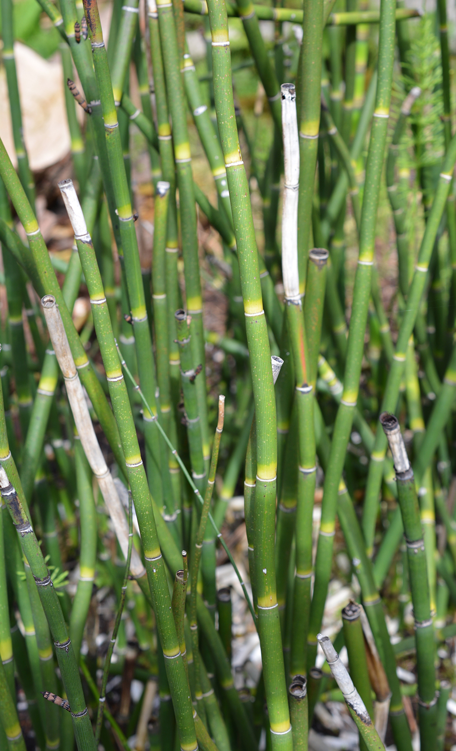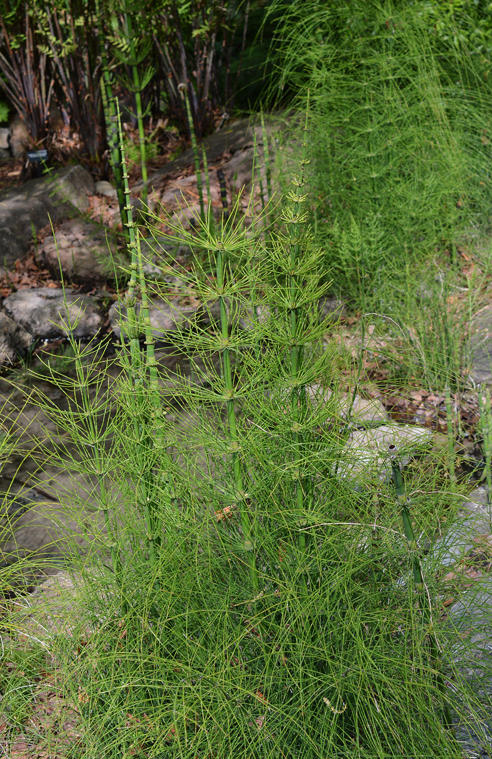 Equisetum is an ancient genus, the only remaining representative of the division Equisetophyta (one of the divisions of non seed-bearing vascular plants). Equisetum has between 15 and 35 species in two subgenera, with only two aquatic species. In the subgenus Equisetum (horsetails) the stems are soft and tend to be regularly branched, whereas the stems of the subgenus Hippochaete (scouring rushes) tend to be hard, fibrous, and unbranched or irregularly branched.