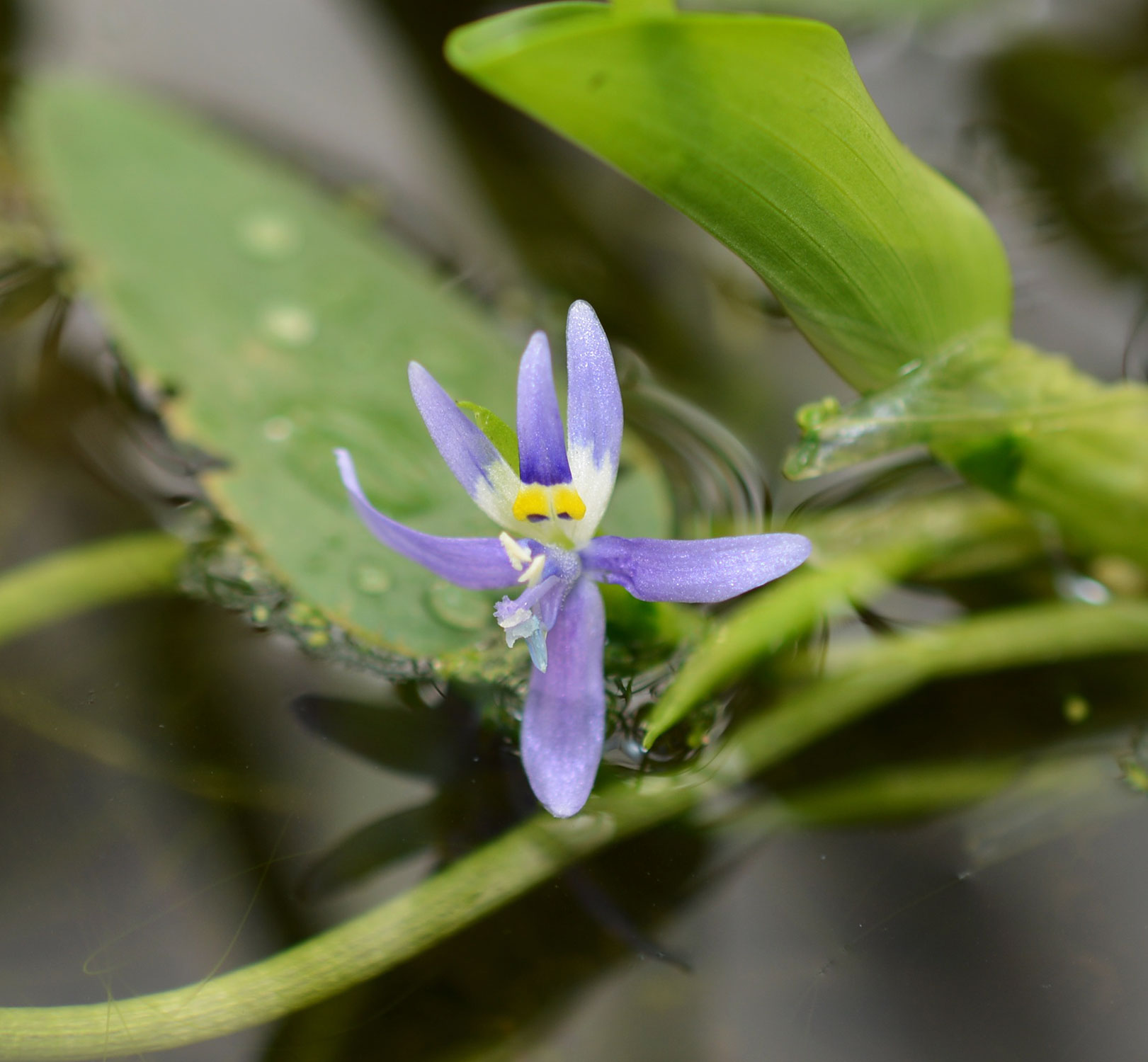 shaped leaves. Monochoria is easily differentiated from Heteranthera by the presence of six stamens, while Heteranthera has three.