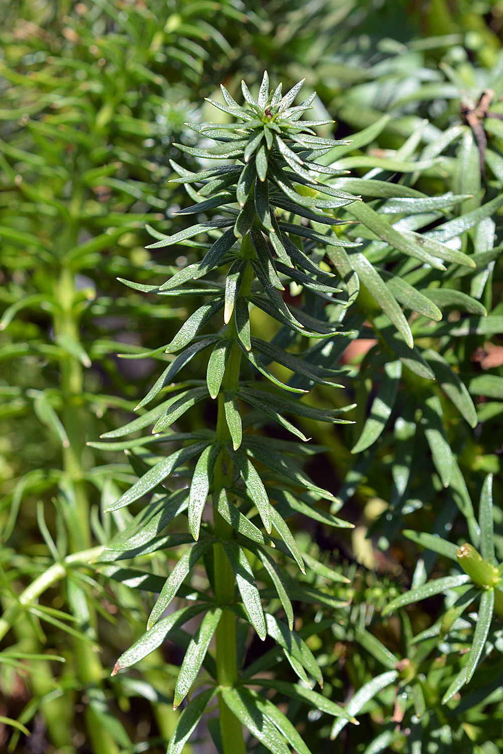 with erect leafy stems. Leaves equally spaced along stem in whorls of 8-15, sessilesessile: