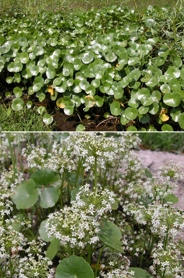 Hydrocotyle is a large genus of at least 75 species worldwide, of which only 5 are aquatic or amphibiousamphibious: