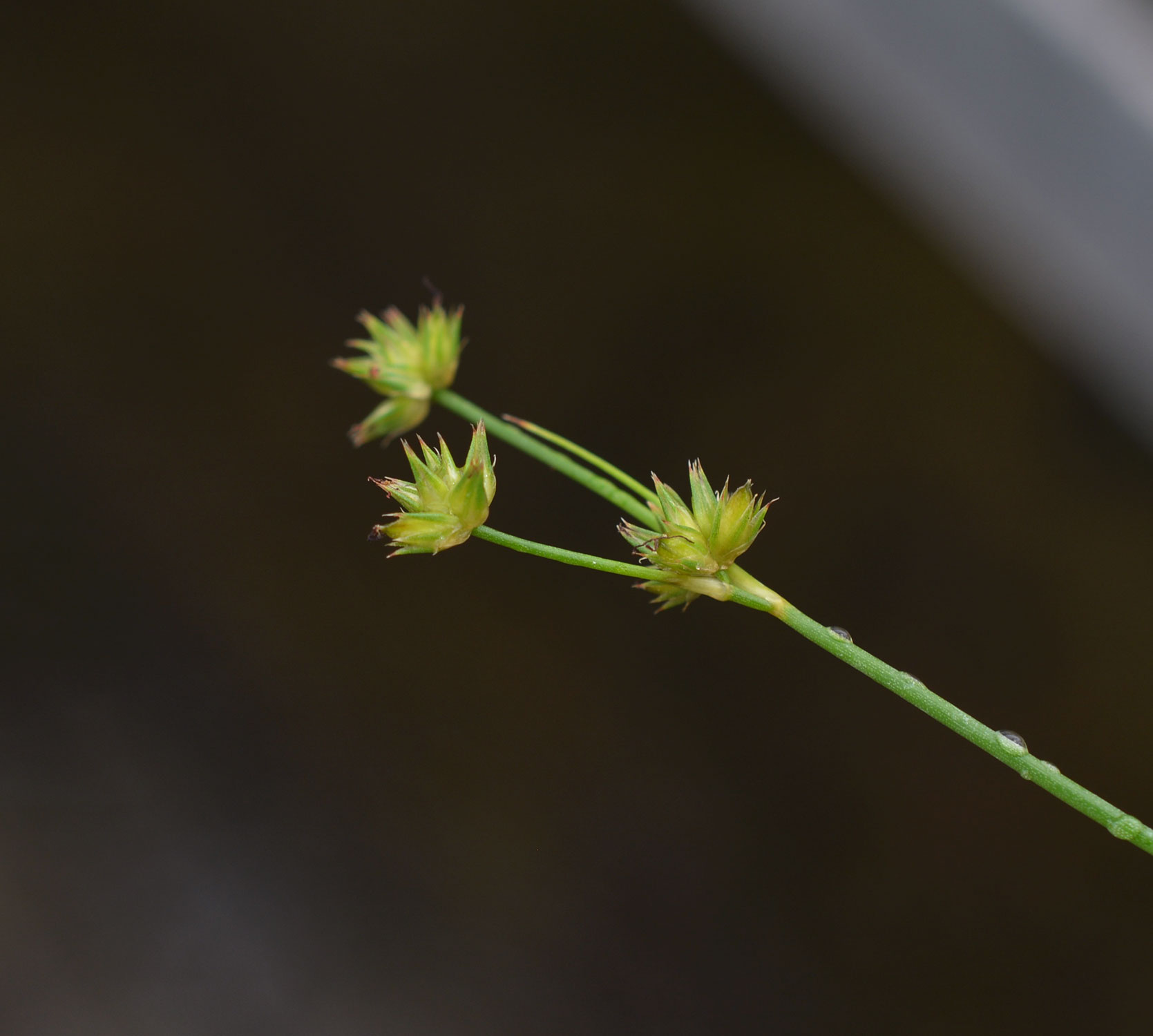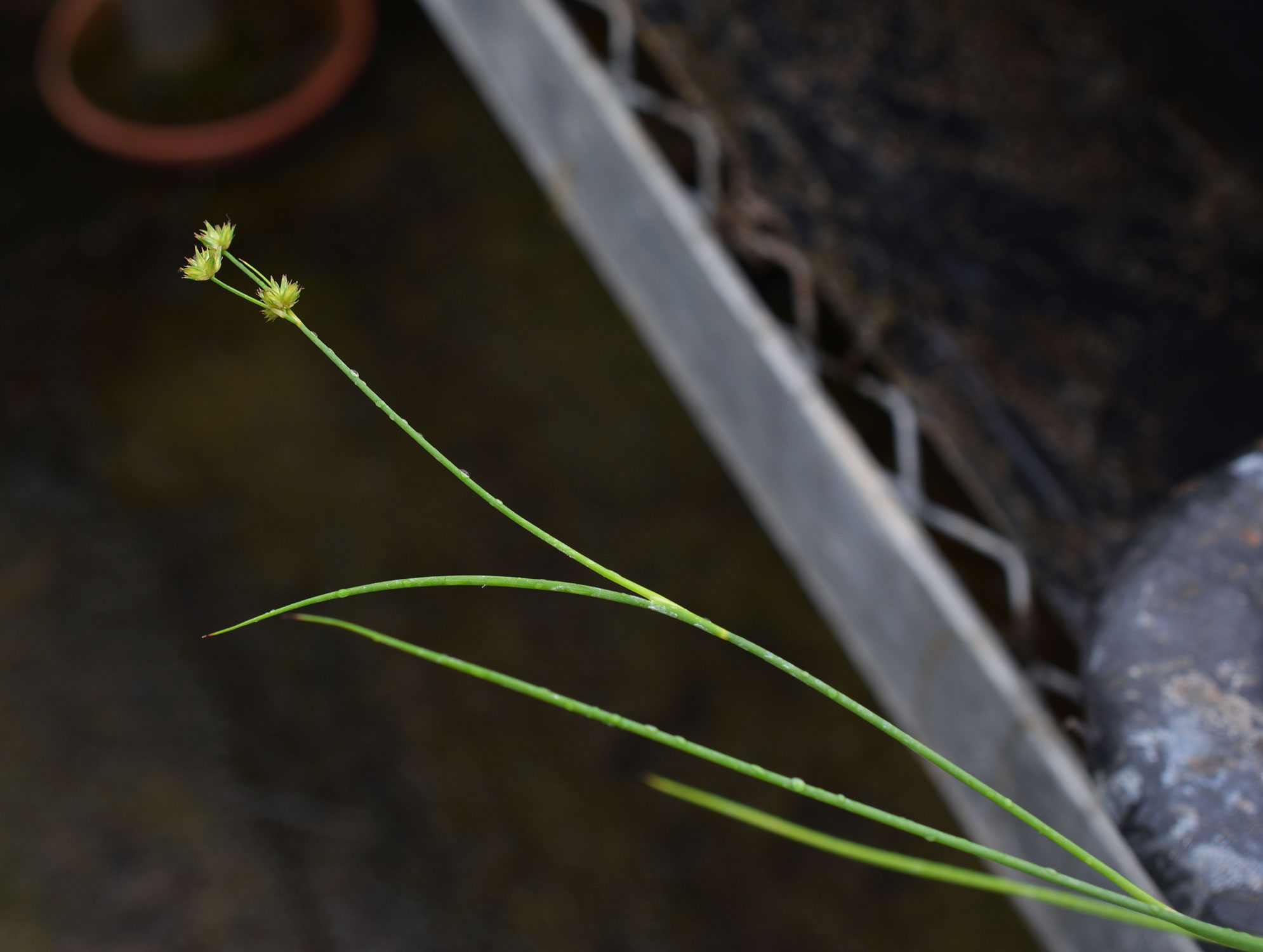 Juncus, the true rushes, contains 348 accepted species and an additional 45 subspecies worldwide, with some species cultivated for ponds. Unlike other species in the genus, Juncus repens branches into clustered leaves that appear whorledwhorled: