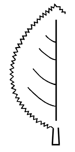 (adj) minutely dentate; projecting in the form of a small tooth; slightly toothed