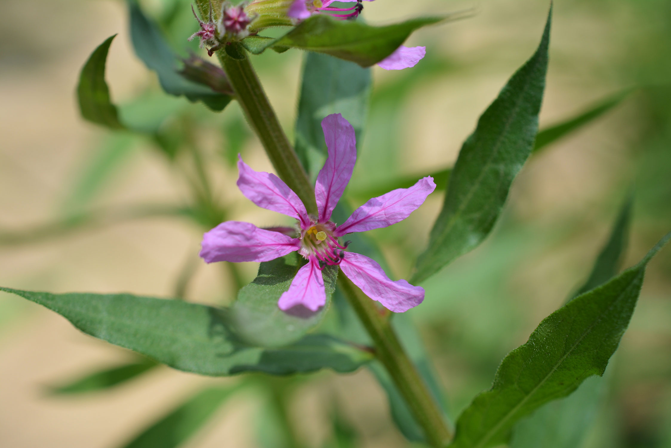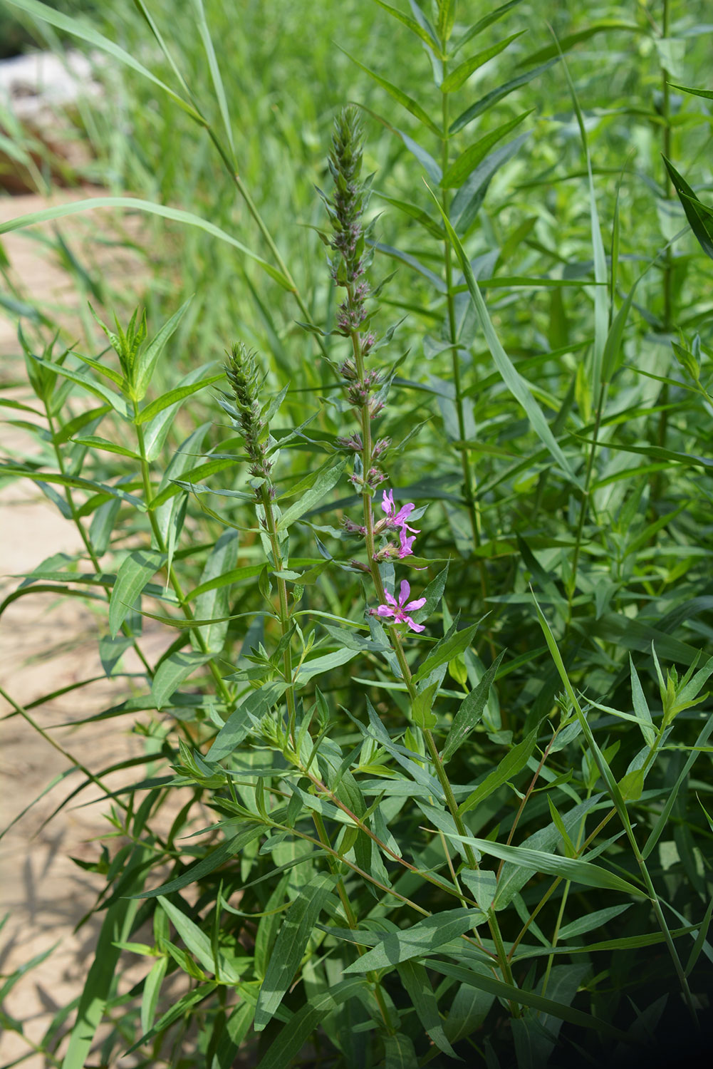 Lythrum contains 30 species, typically wetland species with about six aquatic. Lythrum virgatum is similar to L. salicaria but has narrower, glabrousglabrous: