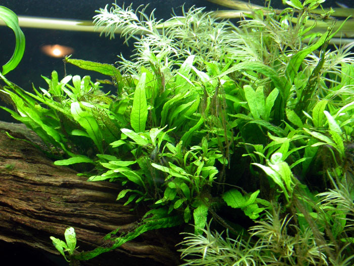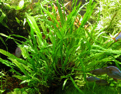 leaves (fronds). Small plantlets arise from leaf tips on both submersedsubmersed: