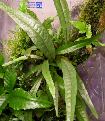 A genus of 26 species throughout Asia and Australasia, Microsorum contains only a few aquatic species. Microsorum brassii (often called 'narrow-leaved Java fern') is much smaller than M. pteropus and has narrower leaves. It is rarely cultivated. Several cultivated varieties of M. pteropus are available, including varieties ‘Windeløv’ and 'Tropica'. If a single leaf fragment is left in water, numerous new plantlets will develop from the leaf underside.