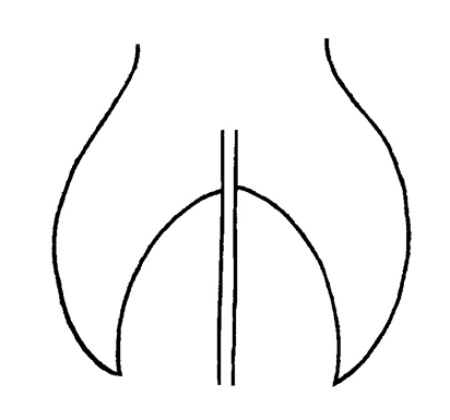 (adj) heart-shaped; in the form of two rounded lobesbase, while those of M. hastata are sagittatesagittate: