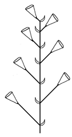 (n) an indeterminate, unbranched inflorescence having pedicelled flowers on a usually elongated axis (may be cymose)