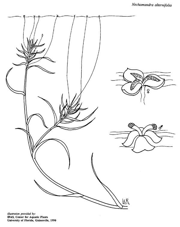 This genus was originally thought to be closely related to worldwide environmental weed Lagarosiphon, but was subsequently considered to be very closely related to Vallisneria based on floral characteristics. Nechamandra is considered a serious potential environmental weed and is declared as a prohibited noxious weed by state authorities in Florida (United States), yet the basis for that declaration is unclear. Nechamandra alternifolia is very similar in appearance to Vallisneria caulescens Bailey & Muell. and V. triptera Jacobs & Frank from northern Australia. This genus is not at present known to be cultivated for aquaria or ponds.