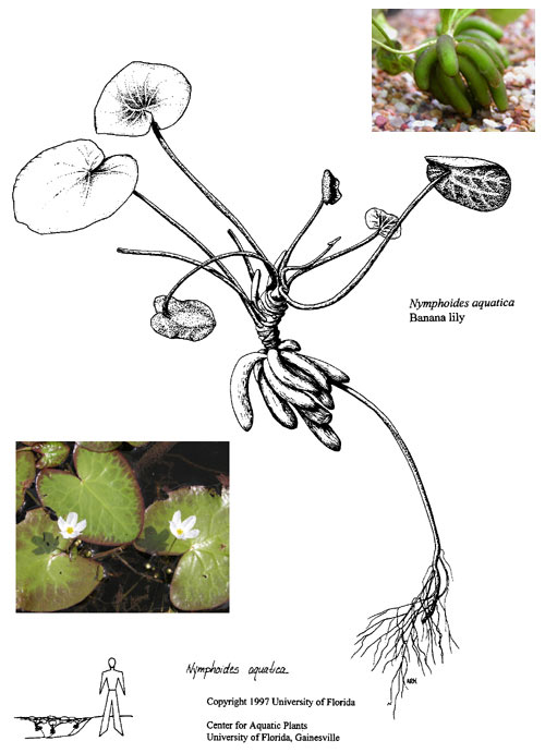 water snowflake, banana lily, floating heart, fringed water-lily, wavy marshwort