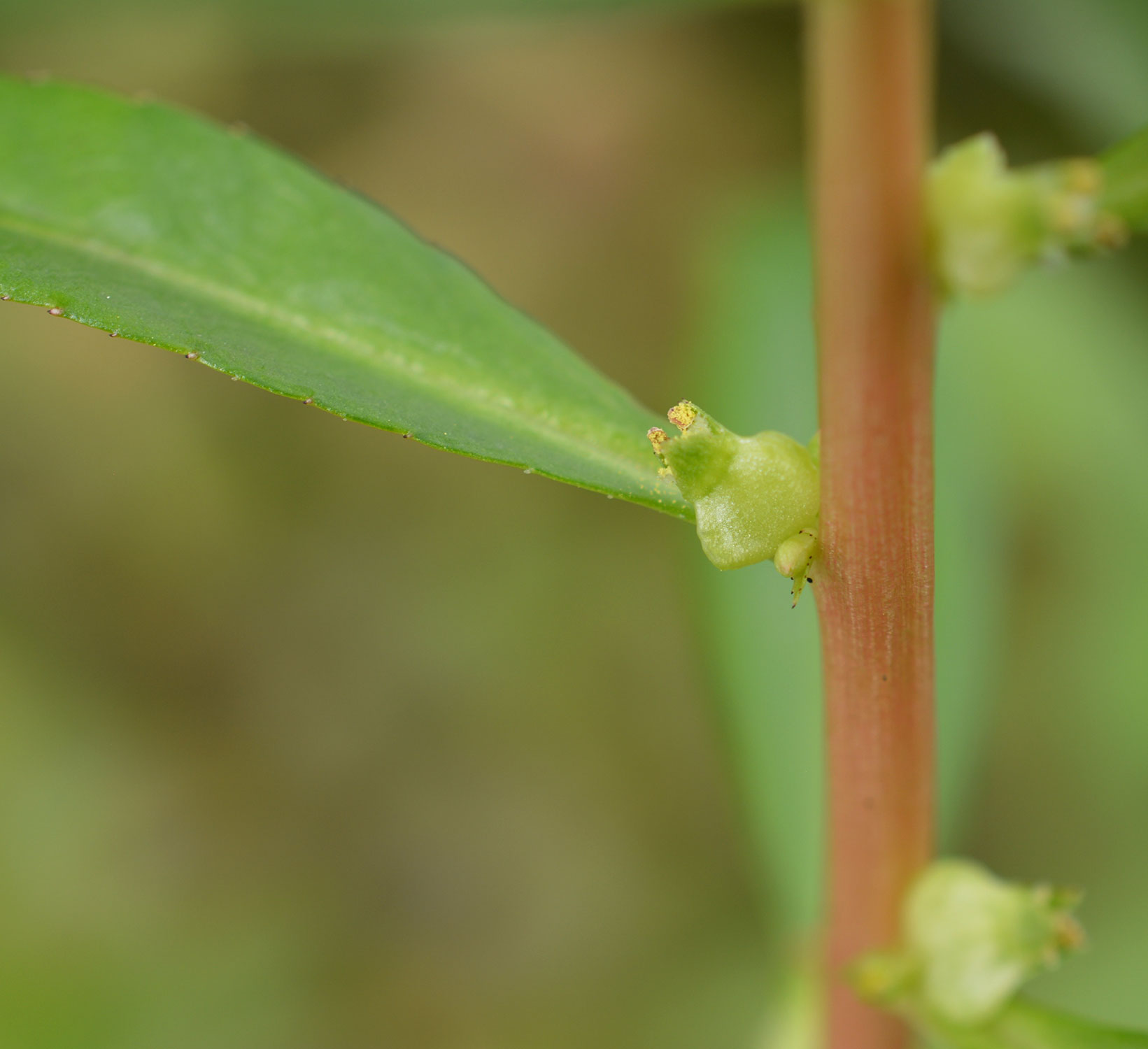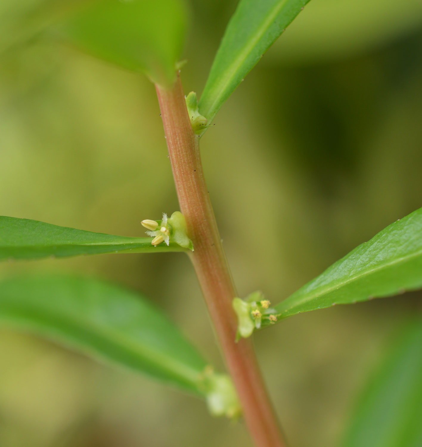 in leaf axils. Sepals 3; petals absent; stamens 3. Dispersal by seed or stem fragments.