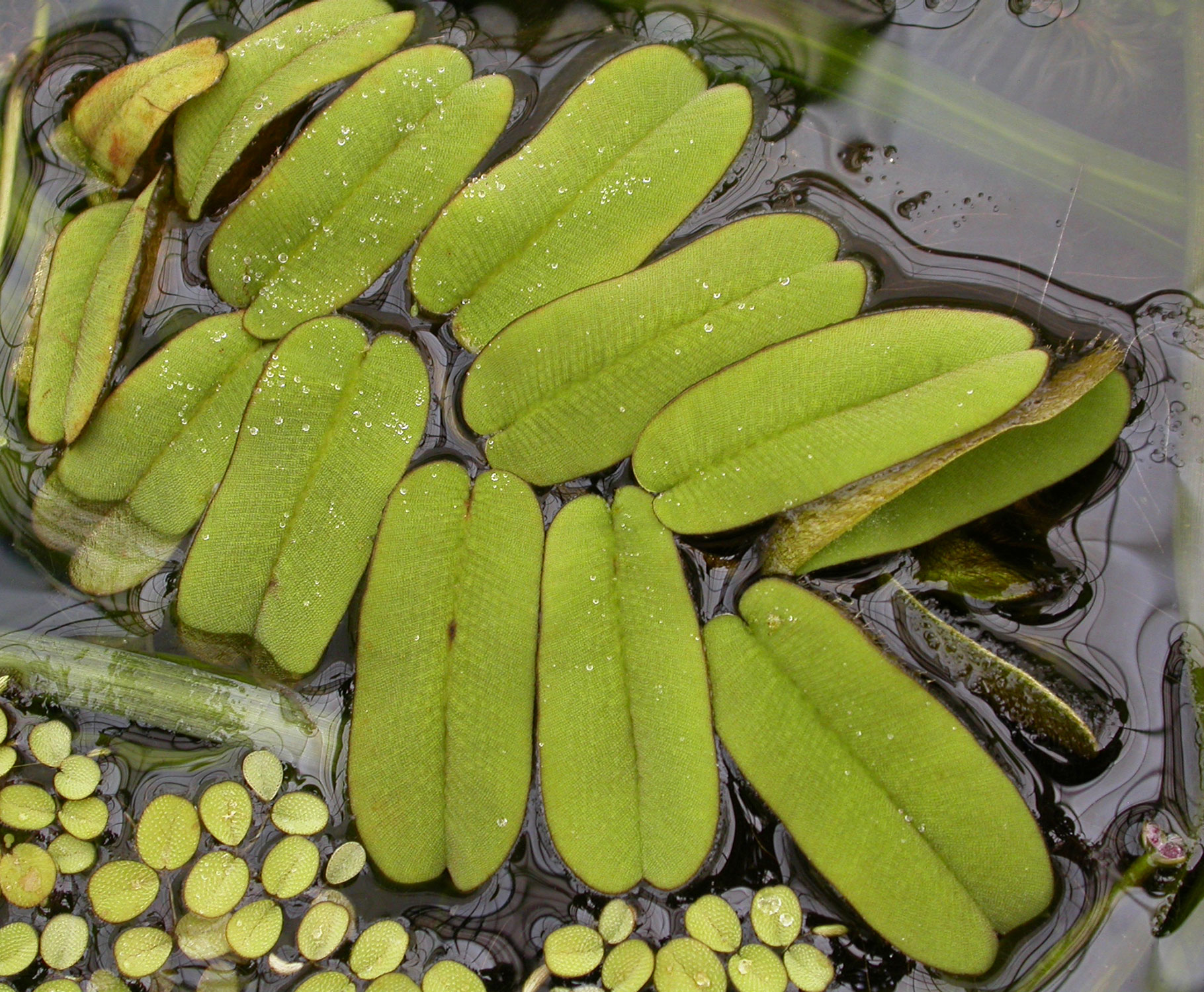 surface; third leaf hanging down below water surface, filamentous, resembling roots, not photosynthetic. Sporocarps borne on modified segments of submergedsubmerged: