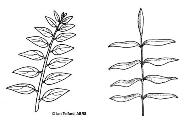 (adj) (of leaves or flowers) distinctly arranged in two ranks along an axis; leaves may be opposite or alternate