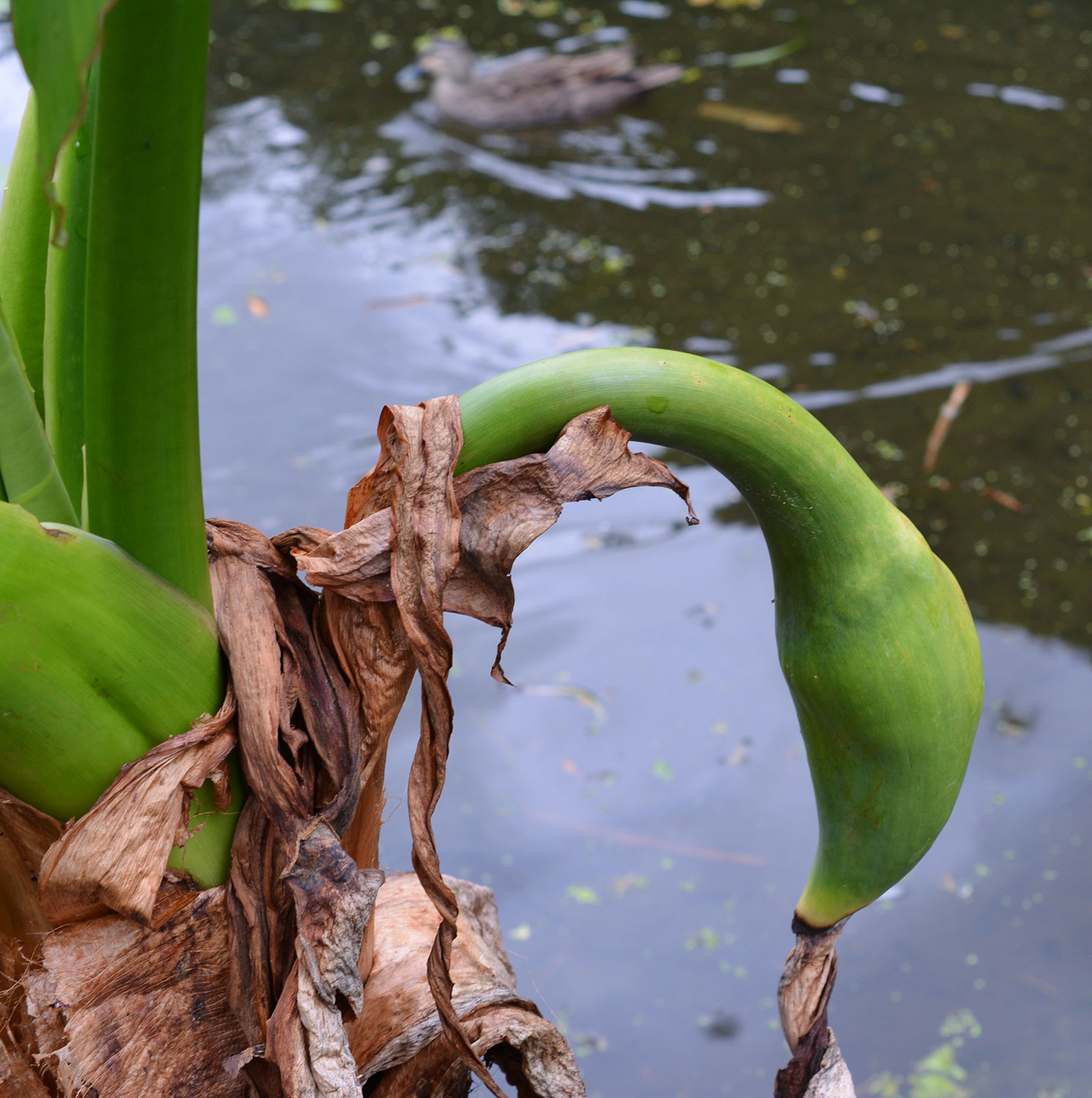 aroid with very large leaves,Typhonodorum contains only a single species and is most commonly cultivated for ponds.