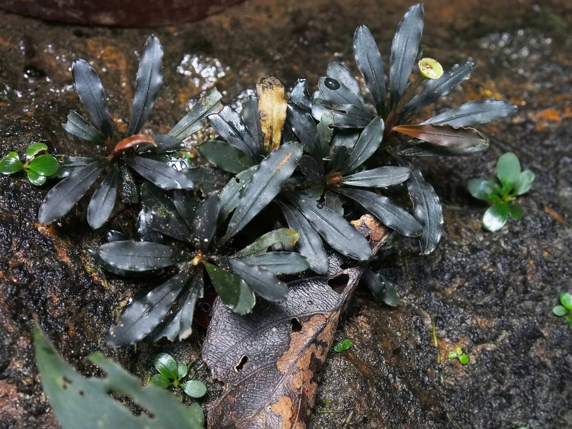 A genus of only two accepted species, Bucephalandra gigantea and B. motleyana. Largely wild harvested, there is a concern of over-harvesting.