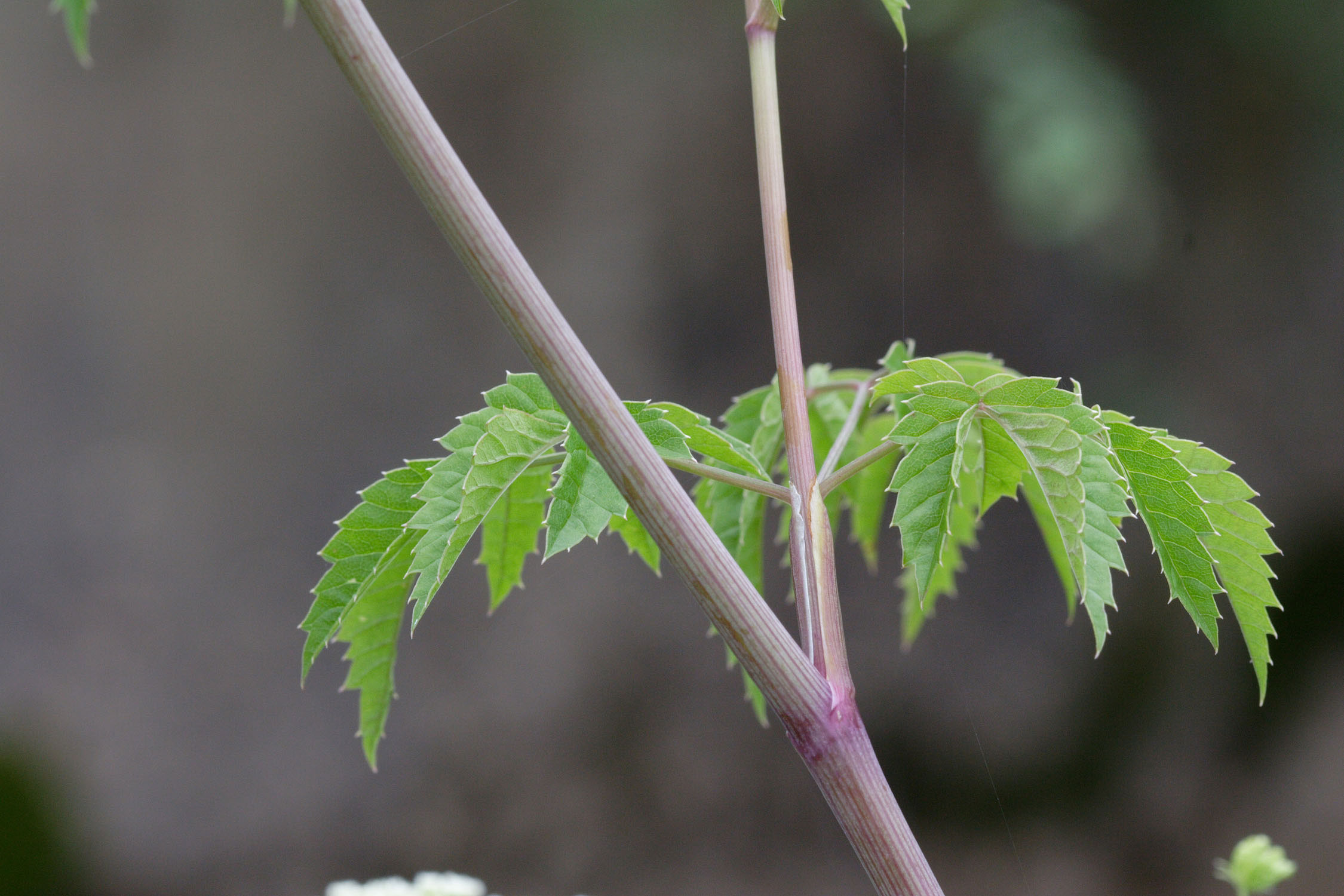 swollen, multi-chambered, containing yellowish oil that becomes reddish brown in air. Stem erect in mature plants, branching, hollow, ribbed, sometimes striped or mottled purple. Leaves al ternateternate: