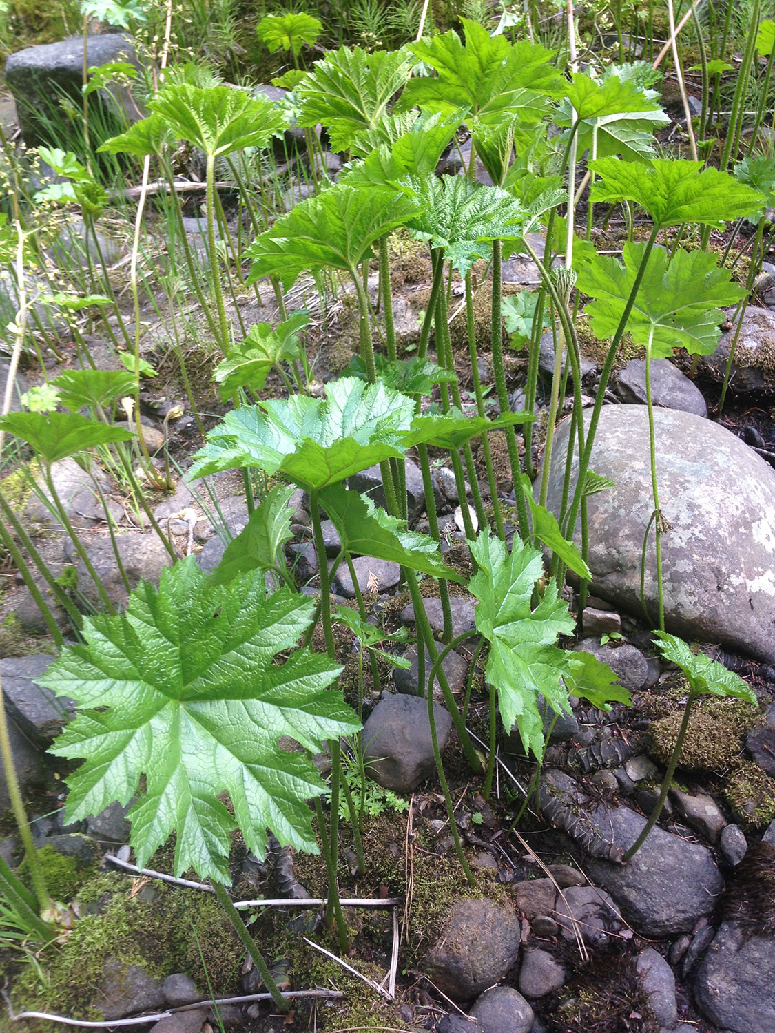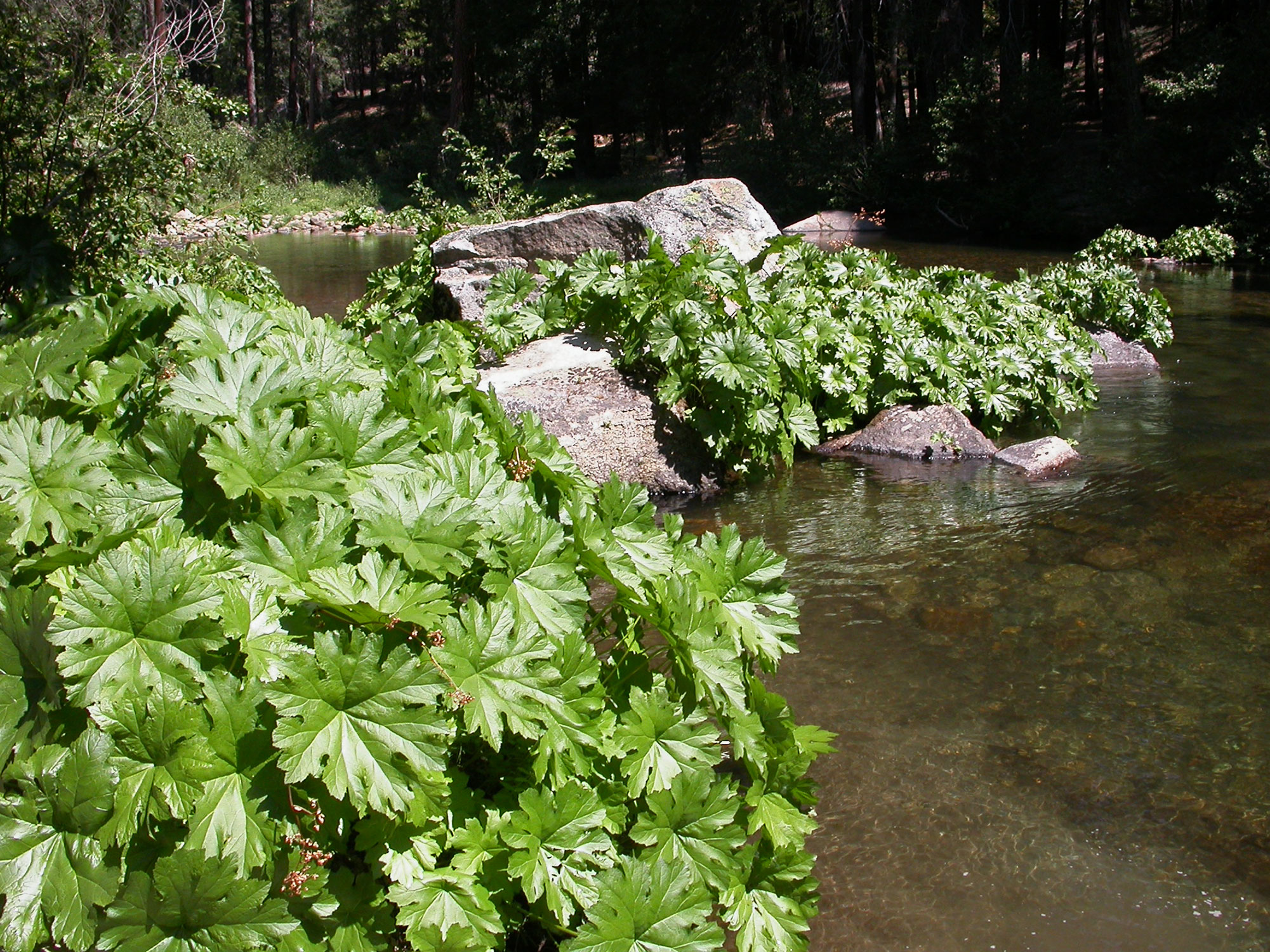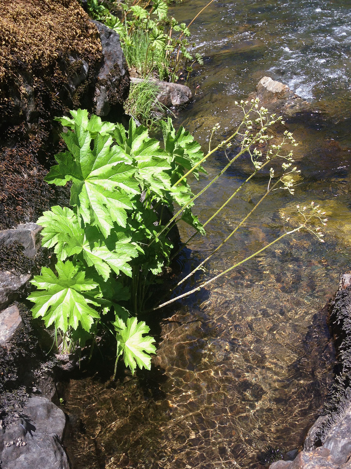 Darmera peltata, the only species in the genus, was previously known as Peltiphyllum peltatum. A common species along montane rivers and streams in its native distribution, flowering occurs in late winter or early spring, often emergentemergent: