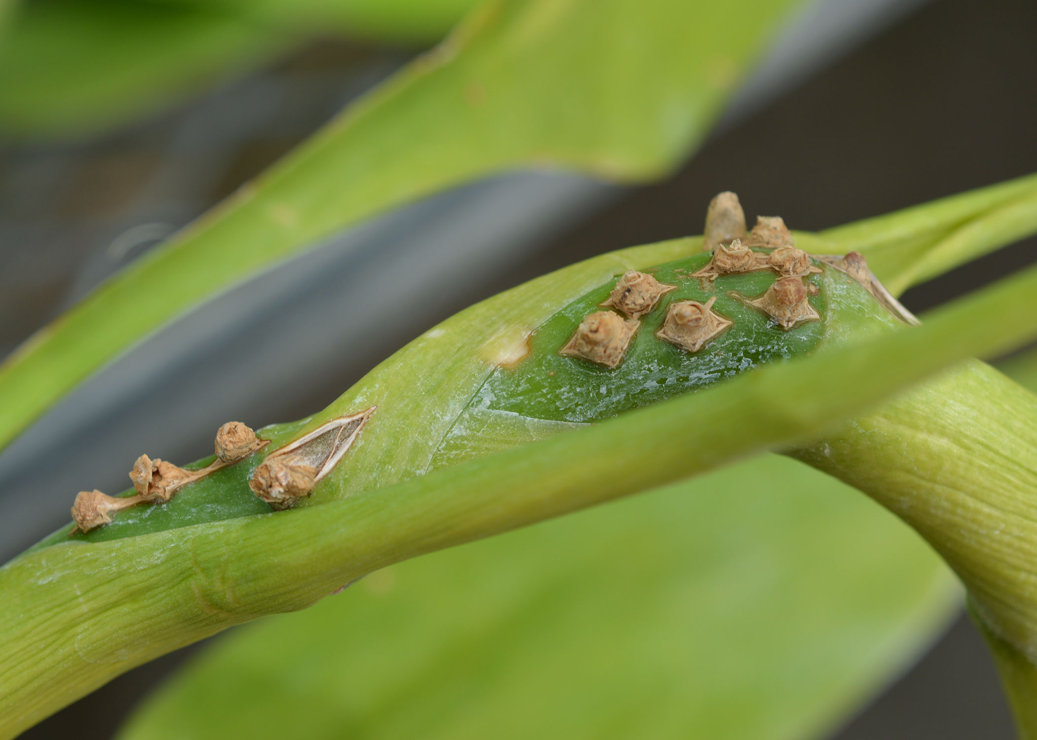 Stem simple, erect, rooting at nodes. Leaves crowded toward apexapex: