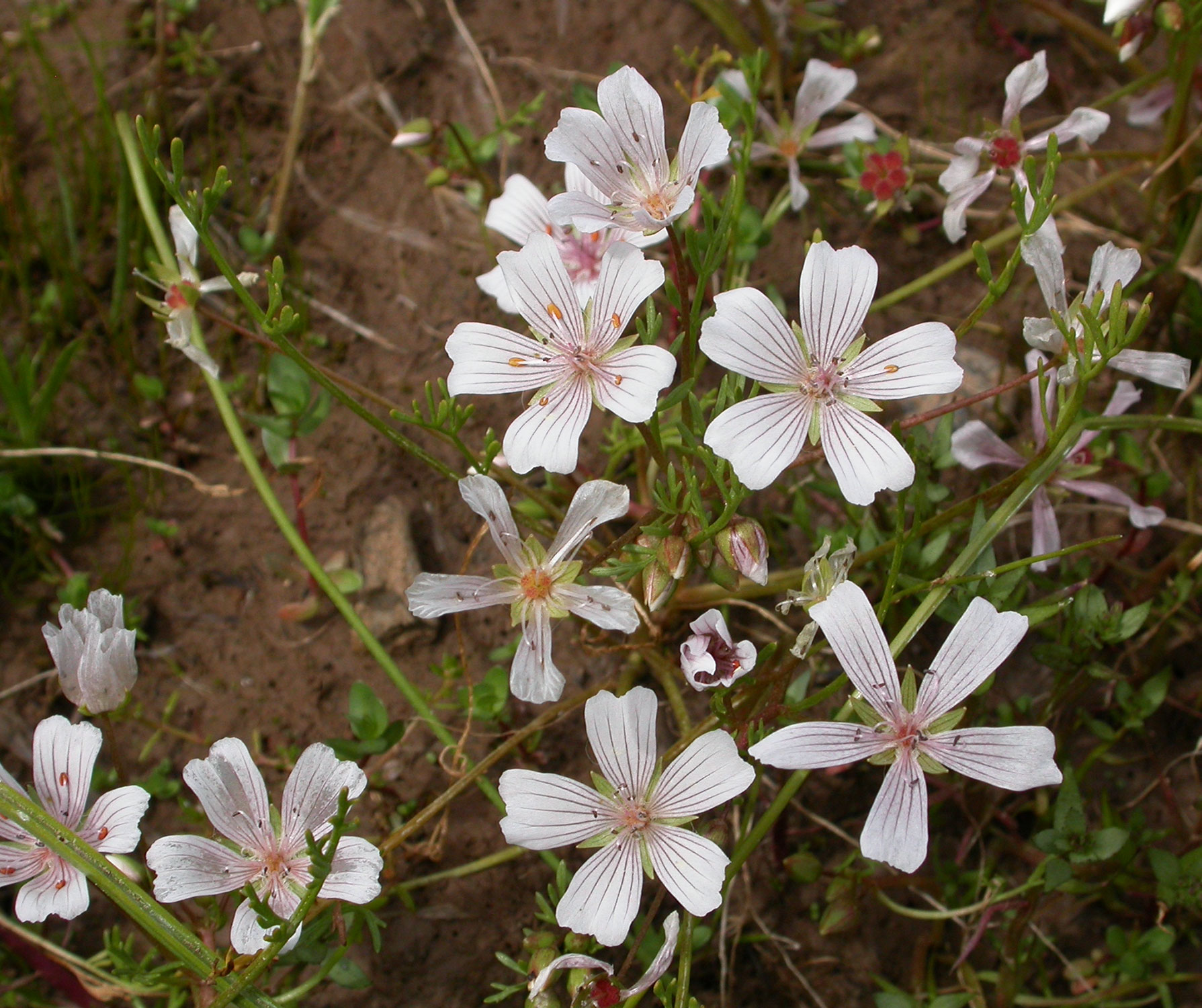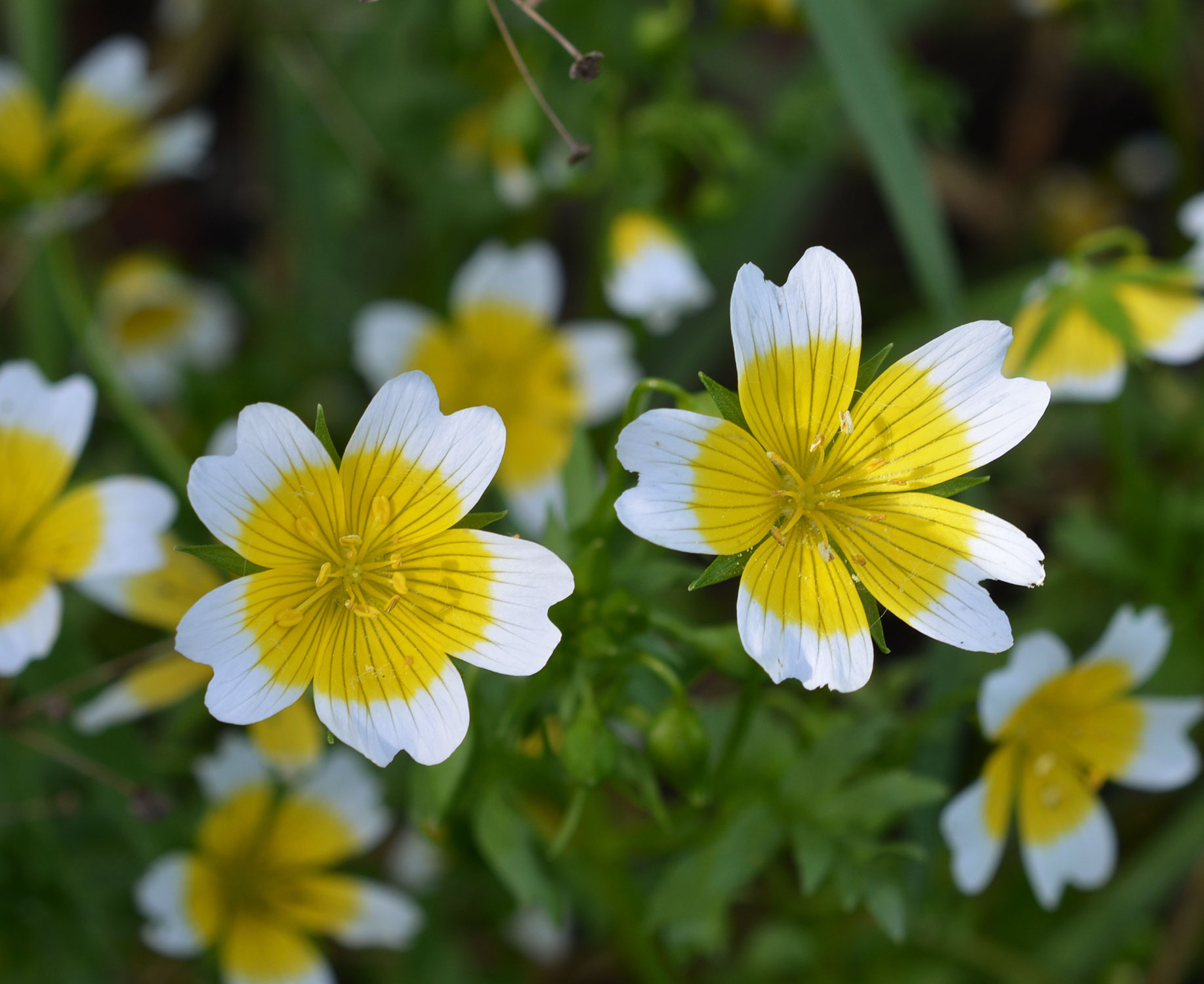 Limnanthes contains less than 10 species, although there is some variation among some species. Limnanthes may form dense carpets in seasonally vernal pools, which dry out during the warmer months.