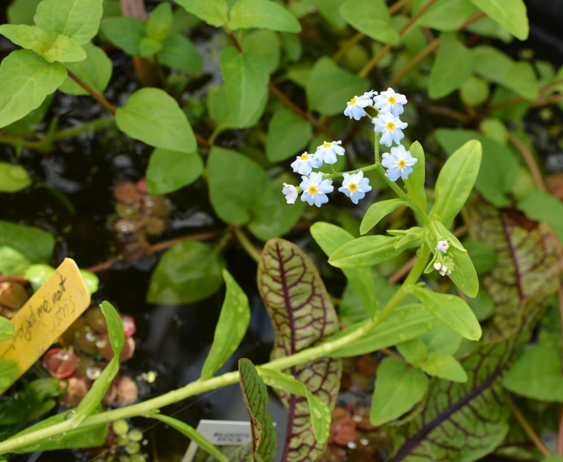 species; Myosotis scorpioides is an aquatic plant cultivated for use in ponds, stream beds, and bog gardens.