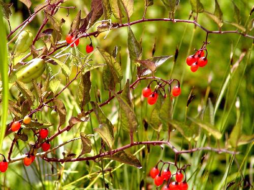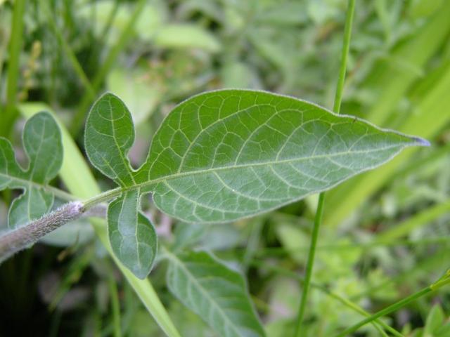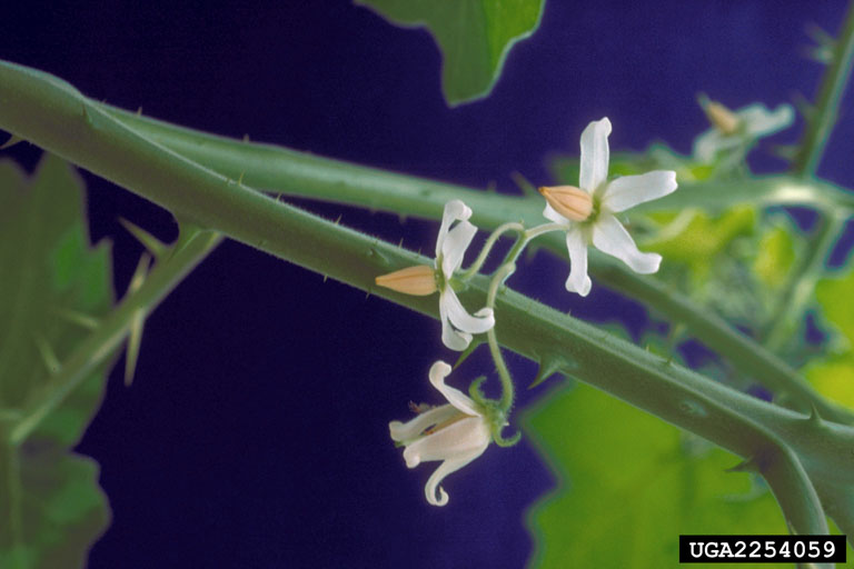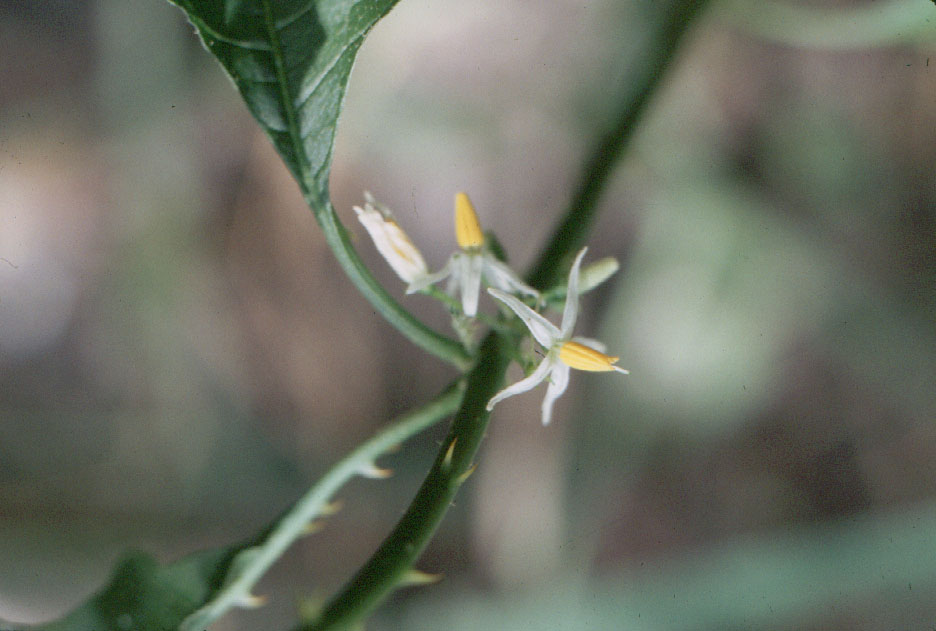 to semi-aquatic. It can be distinguished from other Solanum spp. by its clambering habit, recurvedrecurved: