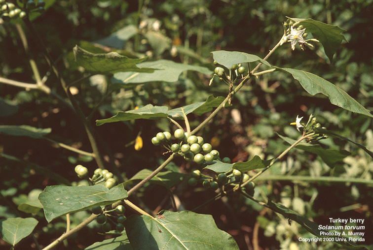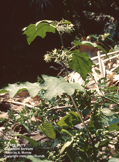 wetland nightshade, aquatic soda apple, scrambling nightshade