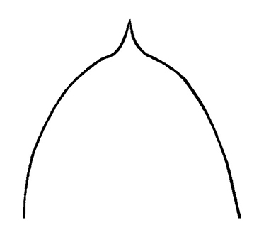 (adj) lance-shaped; widest point below the middle, tapering to the apex