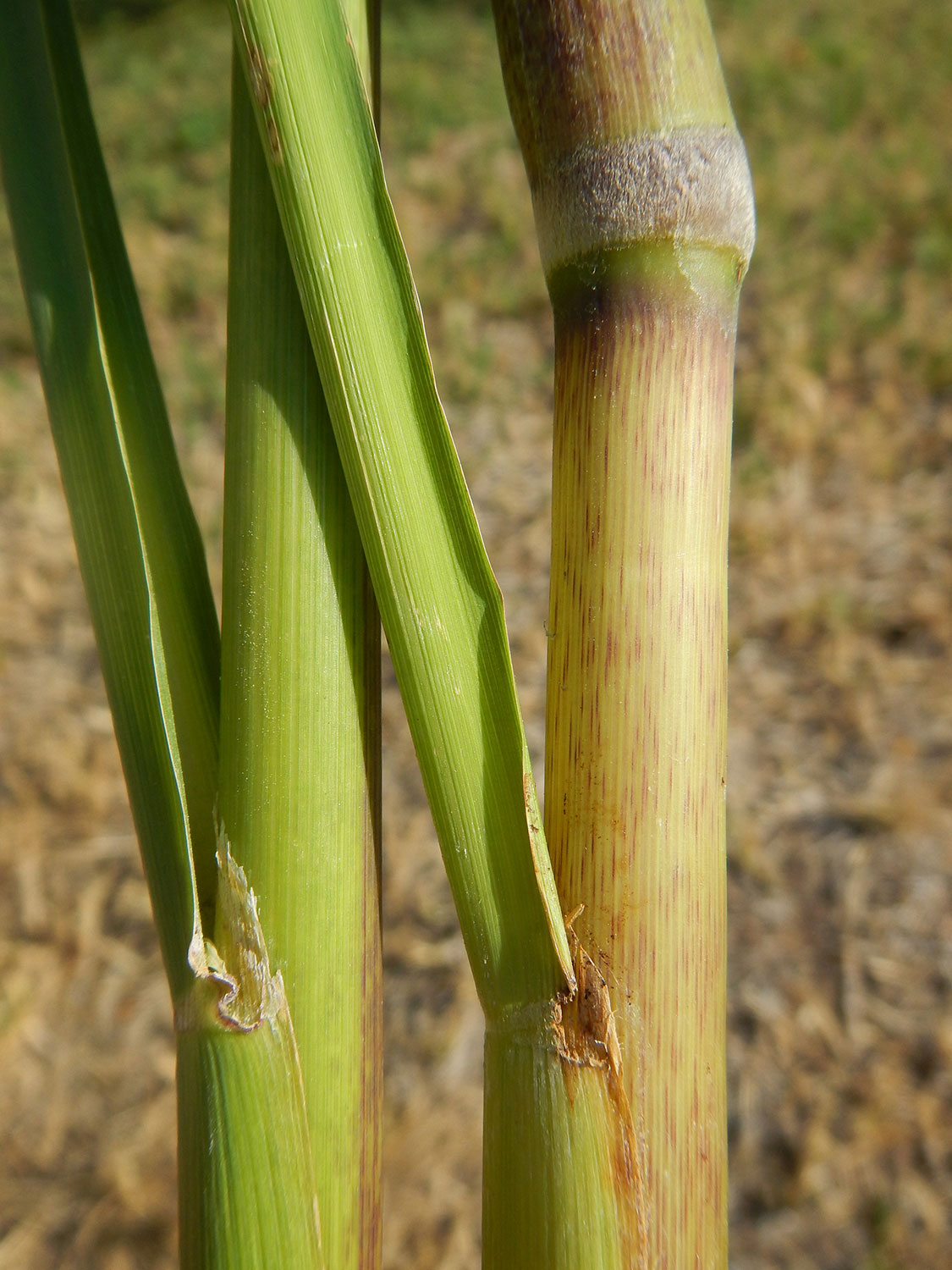 and stoloniferous; culms tall, erect, robust, spongy, nodes thickened. Leaves al ternateternate: