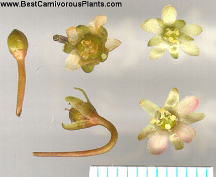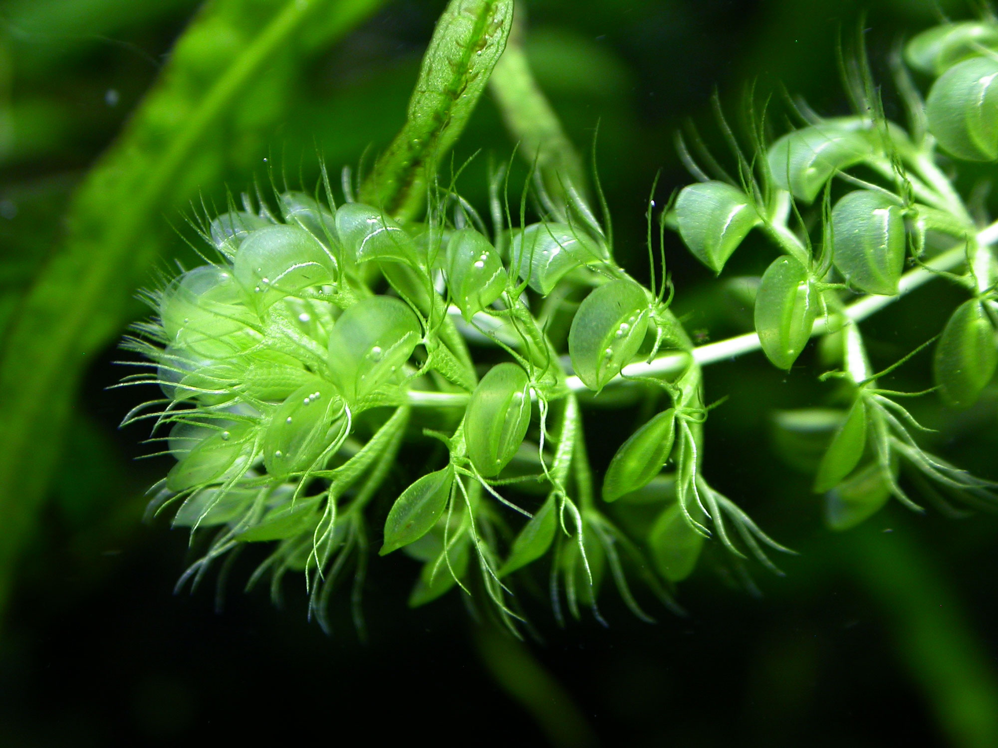Aldrovanda vesiculosa stem apex, submersed, floating just beneath water surface; photo: S.L. Winterton
