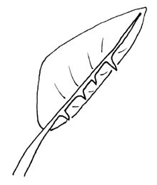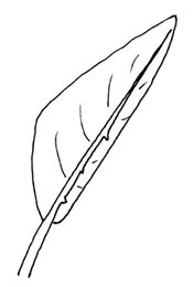 Check the leaf underside for midveinmidvein: (n) the primary, usually central vein of a leaf or leaflet spines.