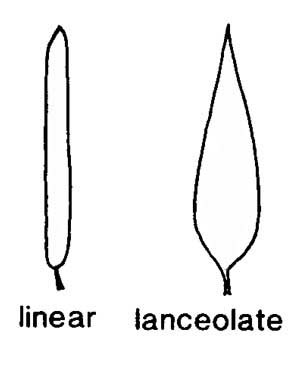 shapes are symmetrical on either side of a horizontal midline and widest at the middle, whereas lance-shaped (lanceolatelanceolate: