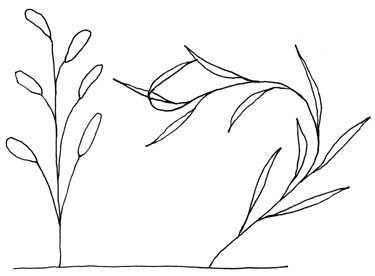 were creeping along the substrate; roots at nodes near a stem's apexapex: