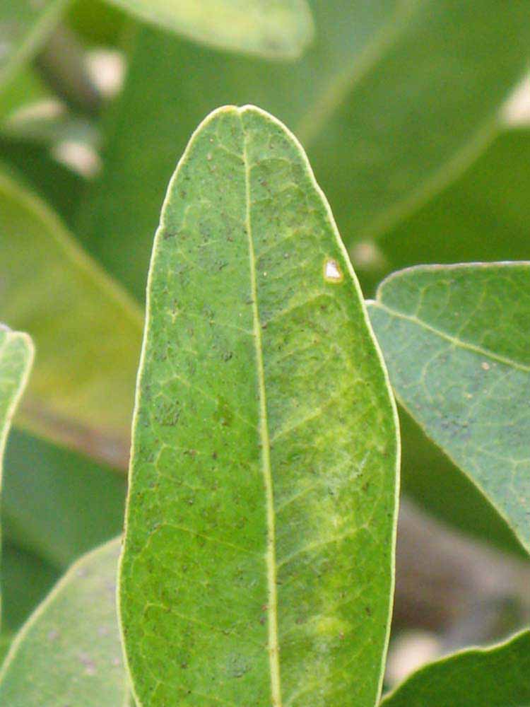 "The nomenclature of this species is in a confused state. Limonia monophylla of Linnaeus has been assumed by almost all taxonomists to be this species. However, Trimen (1893, p. 227) listed L. monophylla L. as a synonym of Atalantia ceylanica, and stated that "the figure of Burmann [1737, pl. 65, fig. l]…appears to represent this rather than A. monophylla…Hermann's specimen…is certainly A. zeylanica [ceylanica]." Airy-Shaw (1939, p. 291) again examined Hermann’s specimen (which is in fact the type specimen of Limonia monophylla L.) in the British Museum and saw no reason to doubt Trimen's findings. Airy-Shaw then showed that A. monophylla was based by De Candolle expressly on "Limonia monophylla Linn." of Roxburgh (1795, vol. 1, pp. 59-60, pl. 83) and that L. monophylla L. was not cited. However, the plant described and figured by Roxburgh was certainly not A. ceylanica and hence was not Limonia monophylla L. Airy-Shaw assumed that Roxburgh's plant from the Coromandel Coast was, in fact, A. monophylla as understood by Hooker (1875, p. 511), and accepted the name A. monophylla DC. for it. However, Roxburgh described and figured a plant having a "four-five parted" calyx, a character not found in A. monophylla as understood by Hooker. That species has, instead of a normal calyx, a bladder-like continuous membrane covering the flower bud which, as the bud expands, splits irregularly. Possibly both Roxburgh and the artist who made the beautiful colored plate of the Coromandel plant failed to see the irregularly ruptured calyx and, without careful study, assumed that it was 4- or 5-parted as in most of the other species of Atalantia and other related genera. Roxburgh described the leaves as "end-nicked" and "from two to three inches long, and one or one and a half broad"; nevertheless he published a plate showing a flowering branch with 23 leaves, none of them emarginate at the apex, measuring 1 7/8 to 2 9/16 inches long, and 5/8 to 1 1/16 inches wide, only one leaf slightly exceeding the minimum width given in the description and more than three-fourths of them narrower than 1 inch! In view of these facts, no great importance should be attached to the fact that neither Roxburgh nor the artist noticed at that time the abnormal splitting of the calyx, something no botanist had noticed in any species of Atalantia or in any other plant belonging to the orange subfamily.